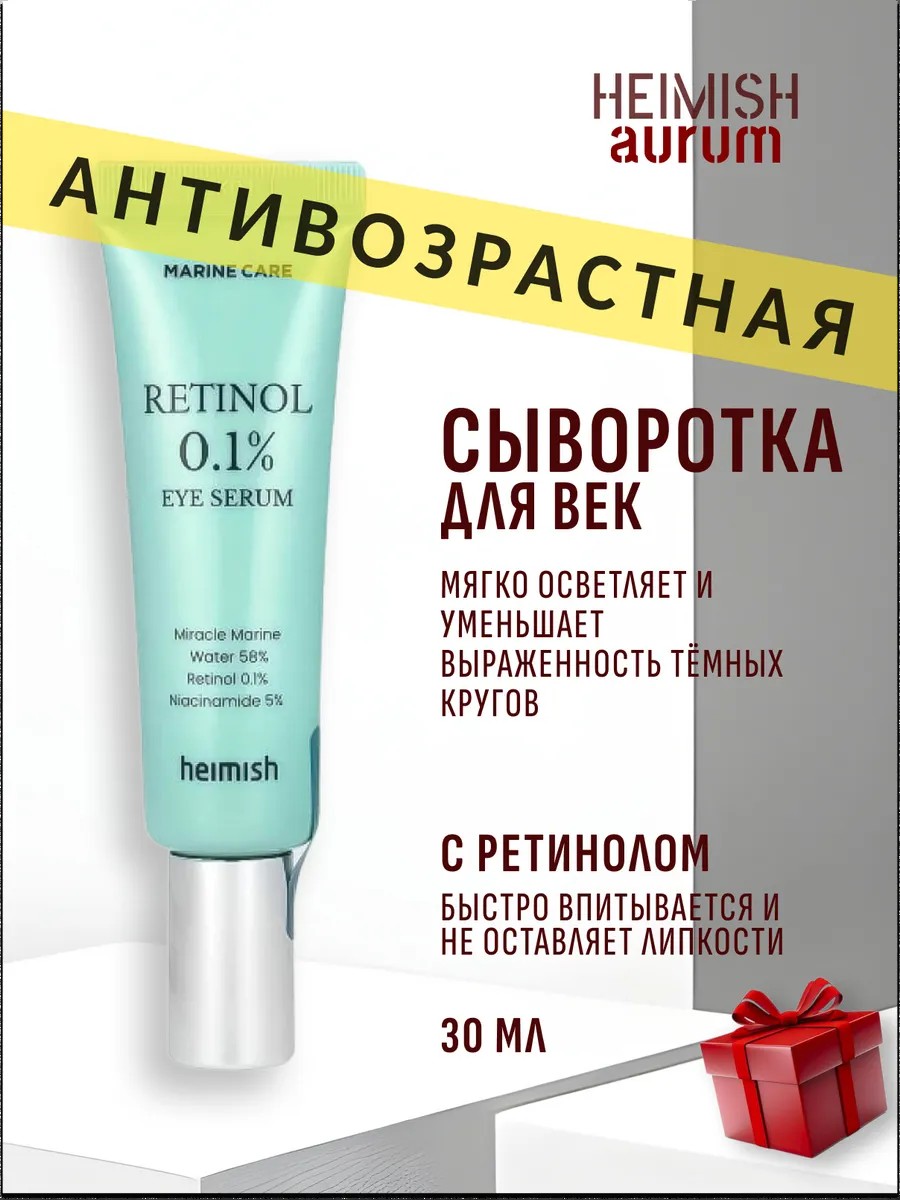 Антивозрастная сыворотка для век с ретинолом Heimish Marine Care Retinol Eye Serum оказывает многофункциональное действие на тонкую кожу вокруг глаз: мягко осветляет и уменьшает выраженность тёмных кругов, укрепляет и повышает эластичность тканей, разглаживает мелкие мимические морщинки и интенсивно увлажняет.