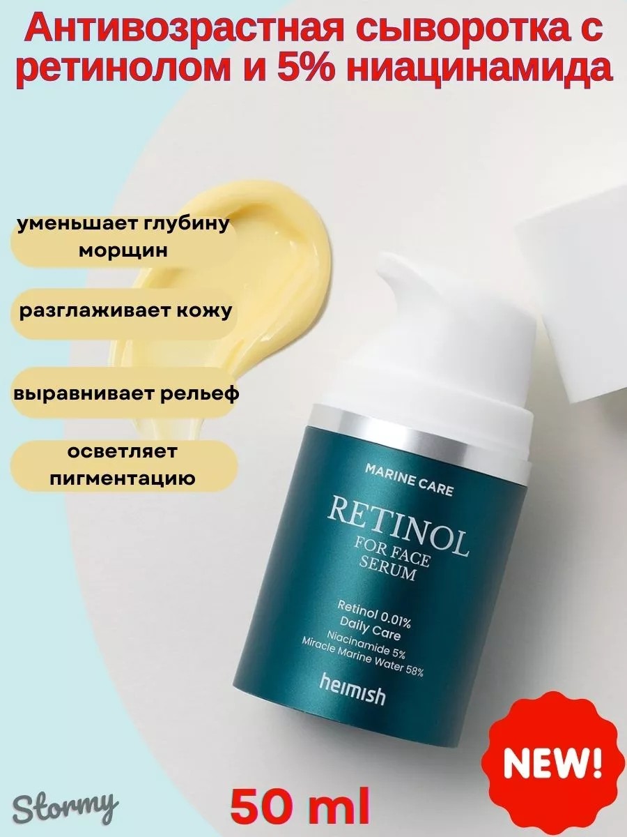 Антивозрастная сыворотка Heimish Marine Care Retinol For Face Serum — отличное средство для быстрого знакомства с ретиноидами. Запускает клеточное обновление, за счёт чего разглаживает кожу, уменьшает глубину морщин и осветляет пигментацию.
