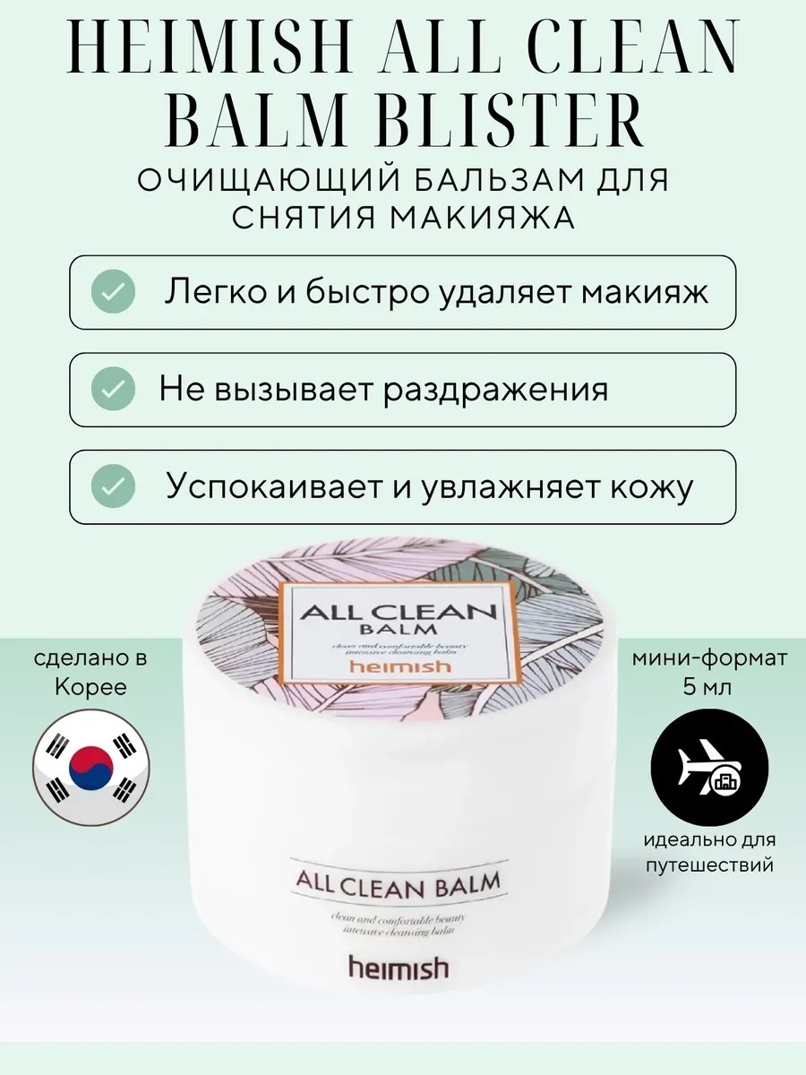 | Комплектация | Очищающий бальзам для снятия макияжа, 5 мл; Heimish All Clean Balm Blister, 5 ml |