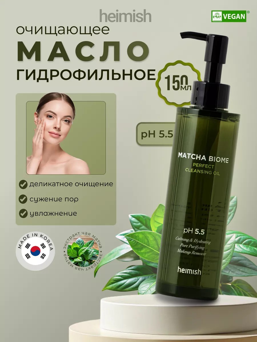 Гидрофильное масло Heimish Matcha Biome Perfect Cleansing Oil с экстрактом чая матча это эффективное средство для снятия водостойкого макияжа и ухода за кожей лица. Очищающее масло со сбалансированным уровнем pH, которое удаляет тёмные пятна от макияжа и загрязнения, делая кожу увлажнённой и гладкой, не оставляя жирного блеска и черных точек.