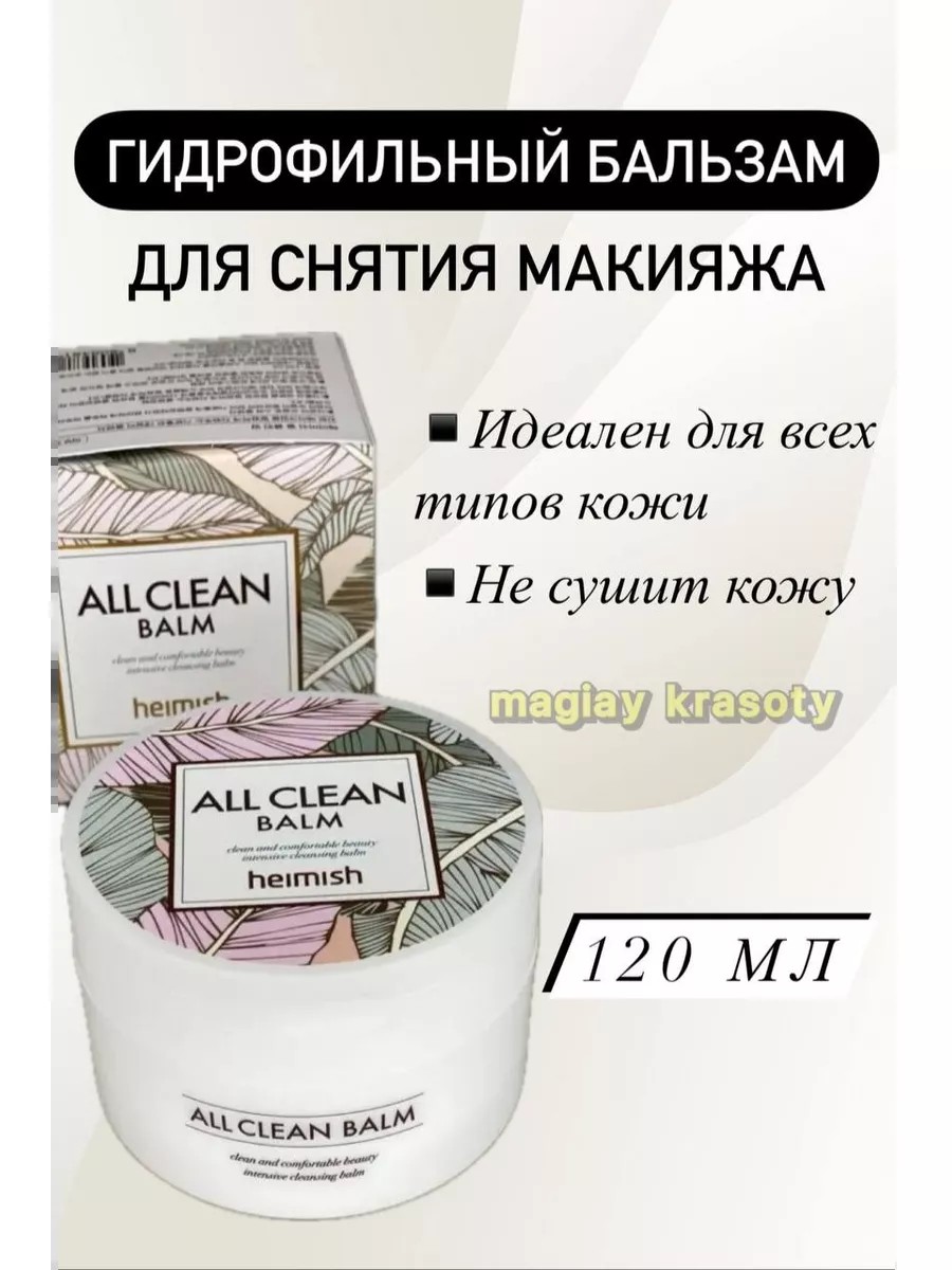 Гидрофильный бальзам для умывания лица Heimish All Clean Balm - идеально растворяет макияж, глубоко очищает поры и устраняет сальные пробки, способствует уменьшению количества черных точек. Оказывает спа-эффект благодаря натуральным аромамаслам. Это не классическое гидрофильное масло, которое оставляет на коже жирный слой, а густое средство на основе эмолентов, которые отвечают за очищение, придавая при этом коже мягкость и гладкость без неприятной пленки на лице. Бальзам щербет гипоаллергенно и подходит для жирной, проблемной, комбинированной и чувствительной кожи. Не комедогенно. В составе умывалки только натуральные ингредиенты. Не содержит алкоголя, парабенов, искусственных красителей и амортизаторов. Веганский. АКТИВНЫЕ КОМПОНЕНТЫ: МАСЛО ШИ оказывает омолаживающее воздействие, снимает воспаления, не забивает поры. ТОКОФЕРОЛ (Витамин Е) разглаживает мимические морщины, устраняет шелушение, приводит в норму жировой баланс. ЦВЕТОЧНЫЕ ЭКСТРАКТЫ обладают выраженными антибактериальными свойствами, снимают воспаления, успокаивают. Комплекс ЦИТРУСОВЫХ масел — увлажняющий и отбеливающий эффект, +осветляет пигментацию и пост-акне, выравнивает и улучшает тон кожи. МАСЛО КОКОСА — способствует регенерации кожи и насыщает кожу важными витаминами. Отлично восстанавливает и заботится о коже, тонизирует и освежает. Экстракт ЧАЙНОГО ДЕРЕВА — успокаивает кожу и обладает антисептическим действием, помогает в борьбе с воспалениями акне и другими несовершенствами кожи. Экстракт ЭВКАЛИПТА — оказывает тонизирующий и вяжущий эффект. Обладает мощными антибактериальными свойствами. СПОСОБ ПРИМЕНЕНИЯ: Сухими руками нанести гидрофилку на сухую кожу лица, немного помассировать до растворения макияжа, затем смочить руки в воде и еще помассировать, после чего смыть остатки средства теплой водой. После этого умыть лицо пенкой для умывания, гелем или любой умывалкой. Ваша кожа глубоко очищена и увлажнена. На завершающем этапе можно использовать тоник для лица.