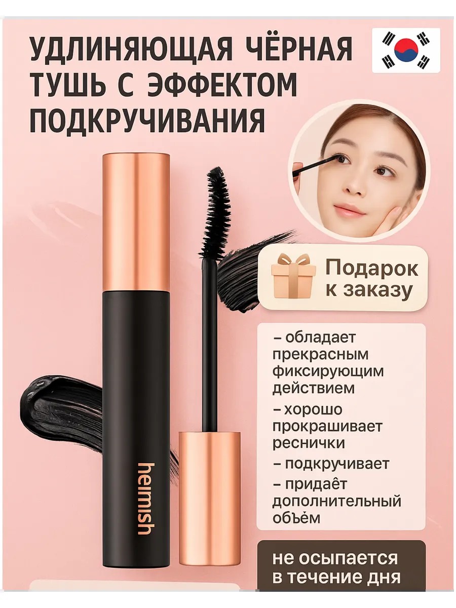 Heimish Удлиняющая чёрная тушь с эффектом подкручивания
