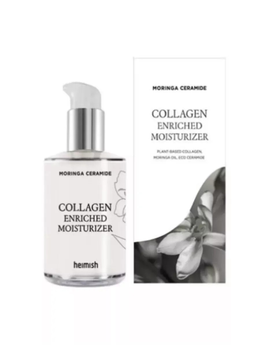 The Korean Heimish Moringa Ceramide Collagen Enriched Moisturizer softens and smoothes skin, eliminates flaking and dryness, combats dullness, imparts a healthy glow, and is quickly absorbed.