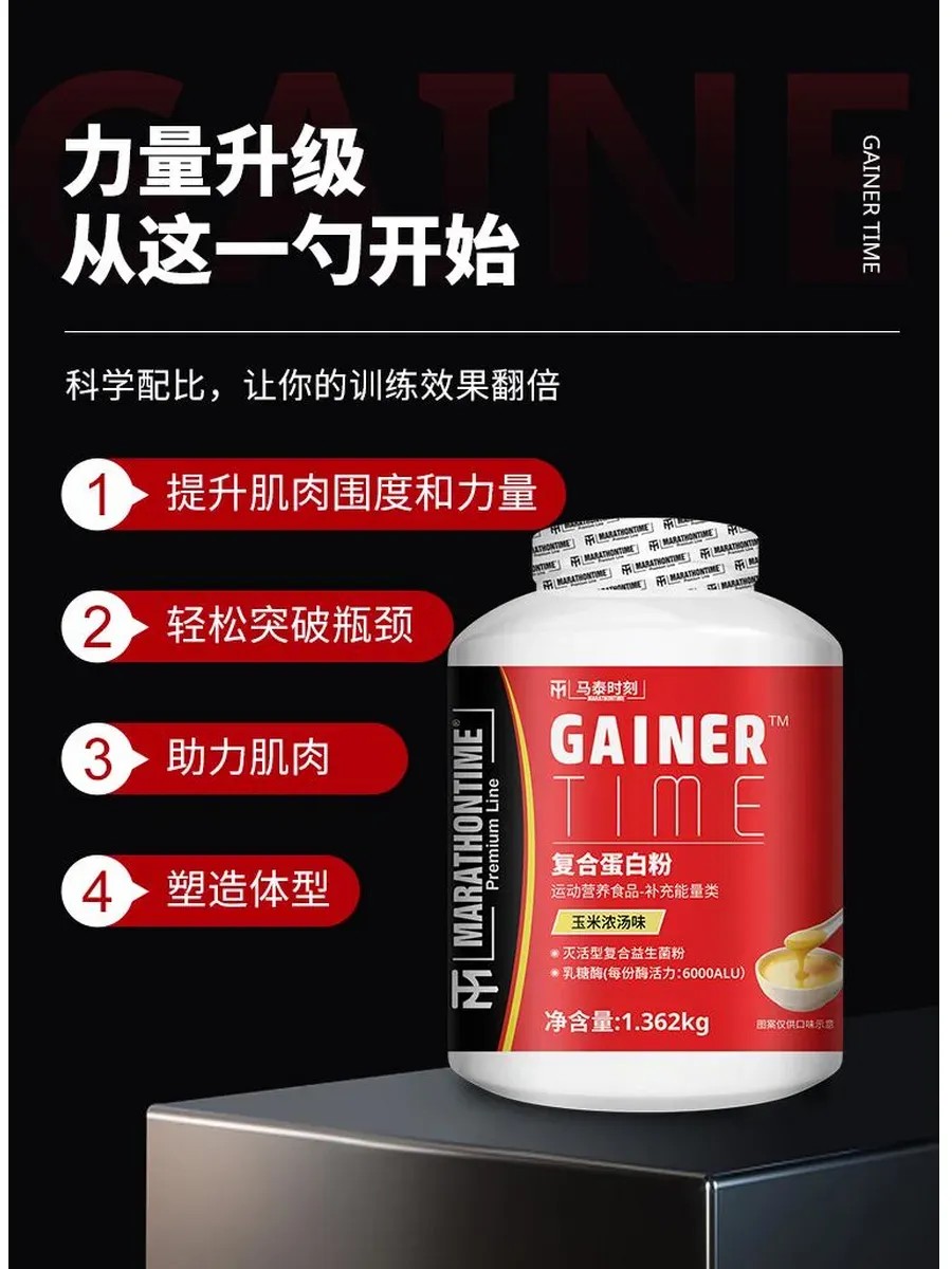 Marathontime Гейнер — мощная энергетическая добавка для активного набора массы, повышения выносливости и быстрого восстановления после тренировок. Идеален для атлетов, эктоморфов и всех, кто стремится к увеличению мышечной массы. Содержит пробиотики, лактазу (60 000 ALU), таурин, углеводы и белки в оптимальном соотношении для роста мышц.
