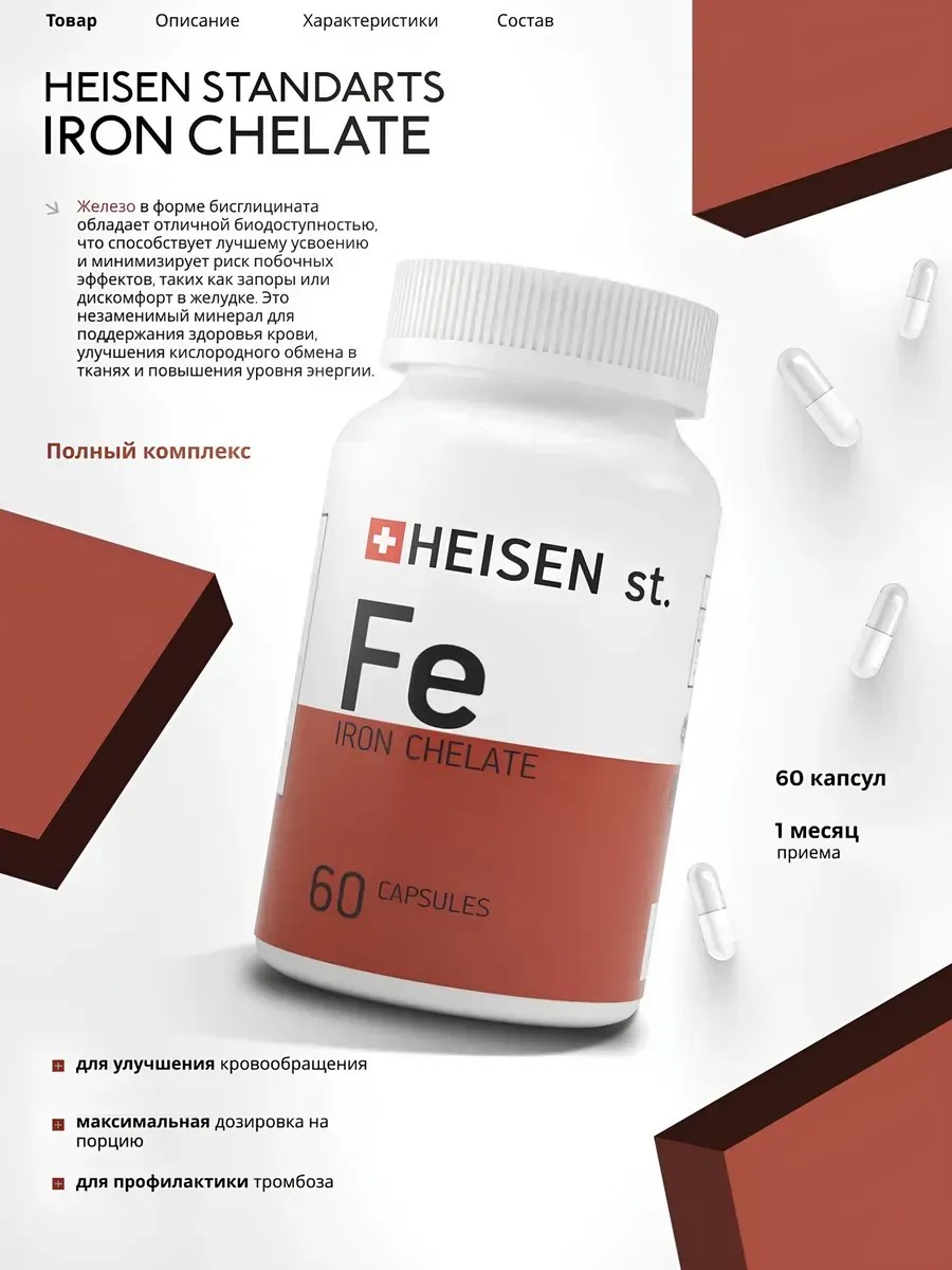 Heisen Standarts Железо Хелат 60 капсул