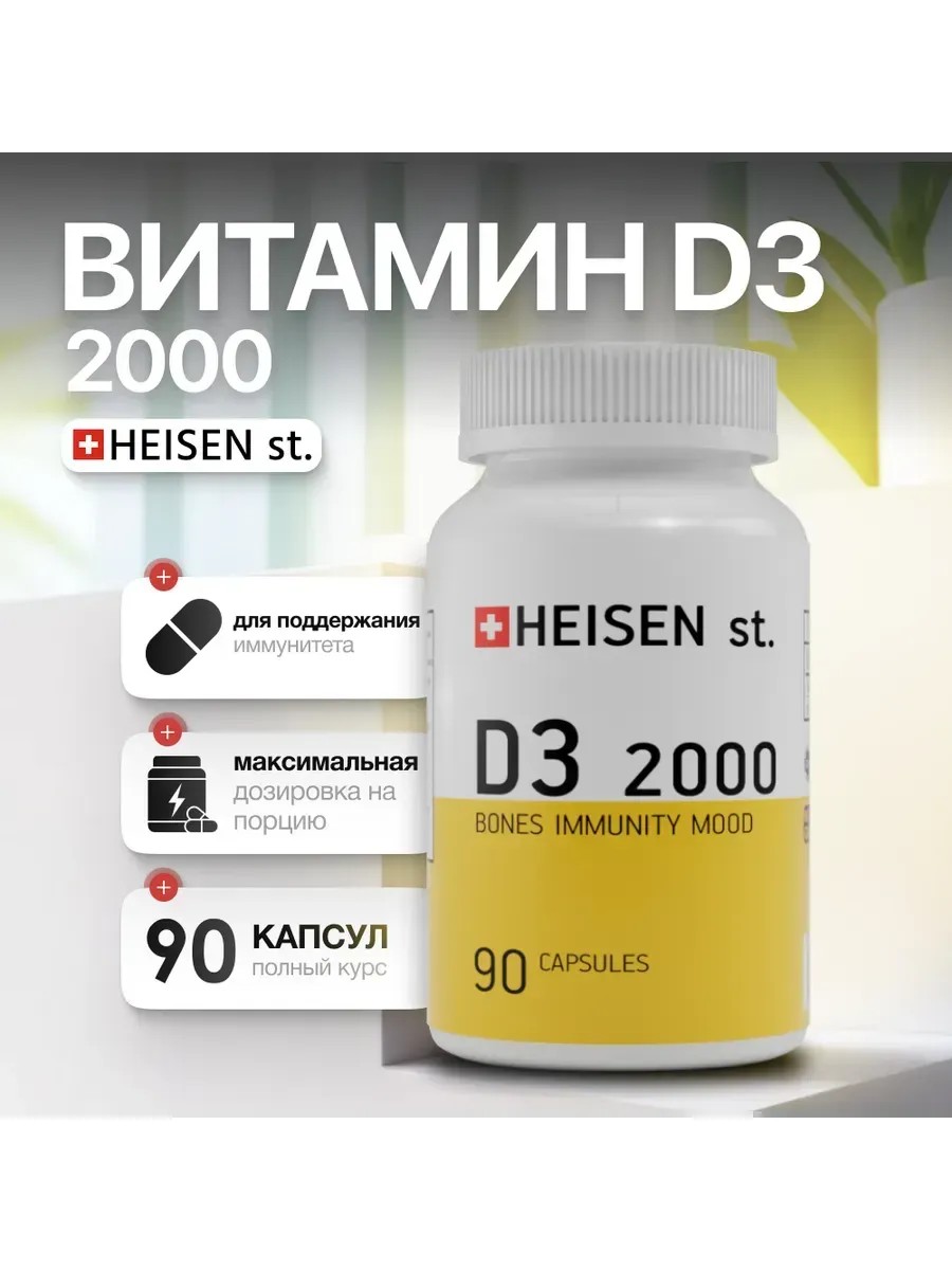 Витамин D3 2000 МЕ HEISEN — ваша ежедневная поддержка иммунитета, костей и энергии!