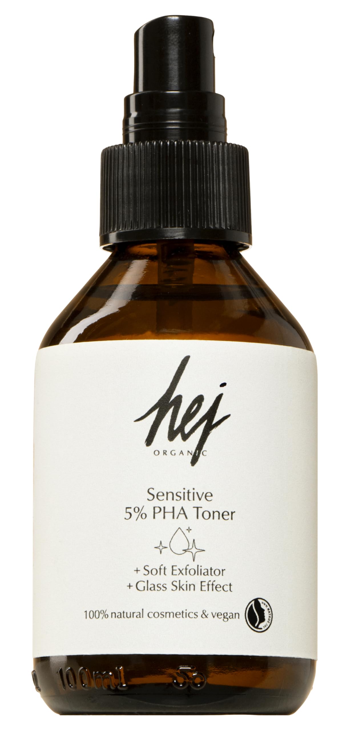 HEJ ORGANIC Sensitive PHA Toner (100 ml) for sensitive skin gently cleanses hydrates and soothes exfoliates with PHA natural cosmetic 100% vegan. HEJ ORGANIC