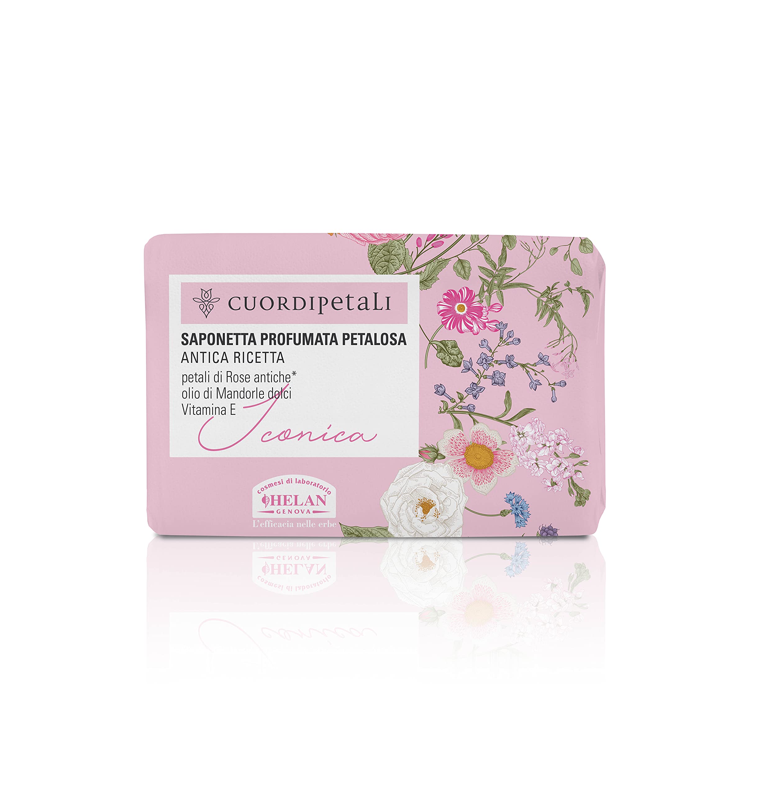 The timeless ritual of handwashing is enhanced by the presence of antique rose petals, offering gentle relaxation for hand well-being and hygiene. The base, respectful of ancient tradition, is made with natural ingredients and enriched with coconut, sweet almond, and olive oils, giving shape to a soap capable of providing a natural, gentle, and effective daily cleansing action. Its properties are rooted in the high content of saturated fatty acids, essential for preventing loss of skin elasticity and dehydration, while the antioxidant action of vitamins counteracts damage caused by free radicals. Use: The unique plant-based formula develops, upon contact with water, a light and soft lather with a pleasant fragrance that rinses easily, removing all impurities and leaving a pleasant feeling of hygiene and softness. pH balanced.Helan - Cuor de pétales ICONICA Savon pétaleux 100 gDESCRIPTION DU PRODUIT La gestualité d'un vrai rito intemporel, est enrichie par la présence des pétales de roses anciennes, une douce détente pour le bien-être et l'hygiène des mains. La base, respectueuse de l'ancienne tradition, réalisée avec des ingrédients naturels et enrichie par les huiles de coco, Amandes douces et Oliva, donne de la forme au savon capable de faire une action détergent quotidienne, naturelle, douce et efficace. Ses propriétés sont enracchées dans le haut contenu d'acides gras polinsaturi, essentiels pour prévenir la perte d'élasticité cutanée et déshydratation, tandis que l'action antioxydante de la vitamine et contraste les dommages causés par les radicaux libres. Utilisation : la formule végétale particulière développe, au contact de l'eau, une mousse légère et douce, agréablement parfumée, qui se rince facilement, en asportant toutes les impuretés et en laissant une agréable sensation d'hygiène et de douceur. à pH orthododémiqueVitamine E. Huiles de coco, amande douce et olive. Avec pétales de roses anciens.