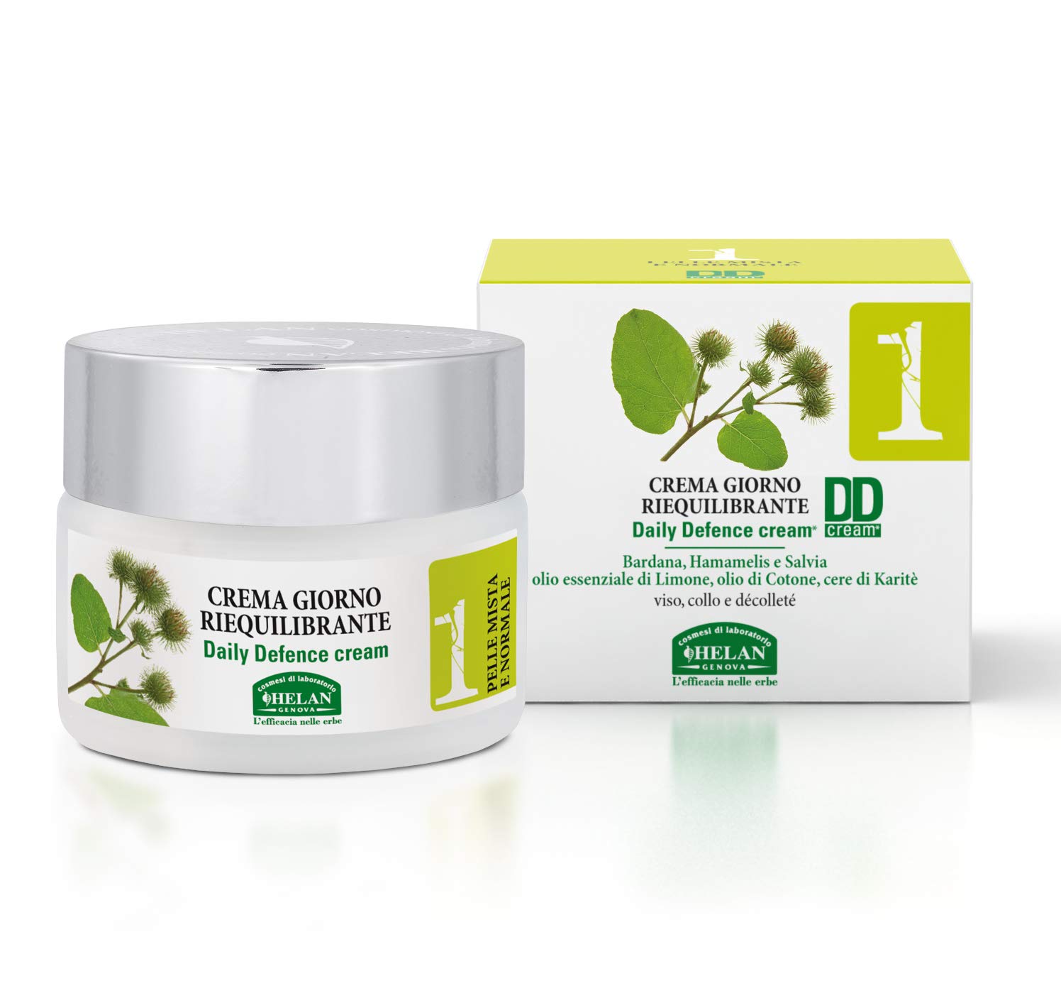 Helan Helan Linea Viso 1 - Purifying Moisturizing Face Cream for Combination Skin with Sunscreen - Face and Neck Care Cream with Vitamin E Shea Butter and Lemon 50 ml - Made in Italy