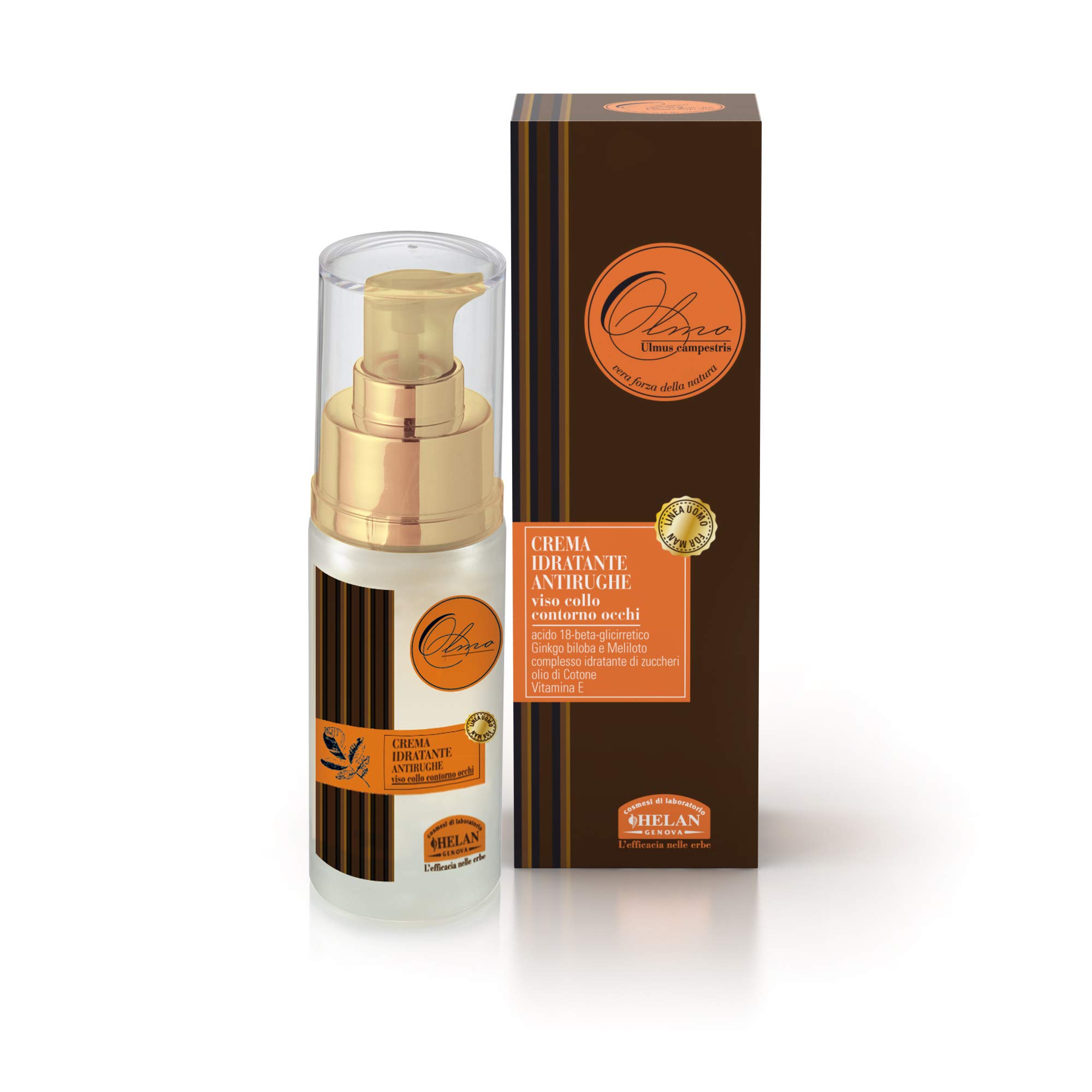 DESCRIPTION DU PRODUIT Hautement efficace, à la texture facile et immédiate absorption et enrichie par la note olfactive fraîche et aromatique de l'orme, donne à la peau une sensation unique de bien-être Pour conserver plus longtemps les caractéristiques de la jeunesse, HELAN a réalisé cette crème où à la première action hydratante est associée à une action apaisante déterminée par l'acide 18-ß-glycyrrrhétique, particulièrement utile pour soulager les irritations et les rougeurs et les extraits du Ginkgo biloba et Melilotus qui aident à prévenir et atténuer les gonflements, les poches et les cernes.