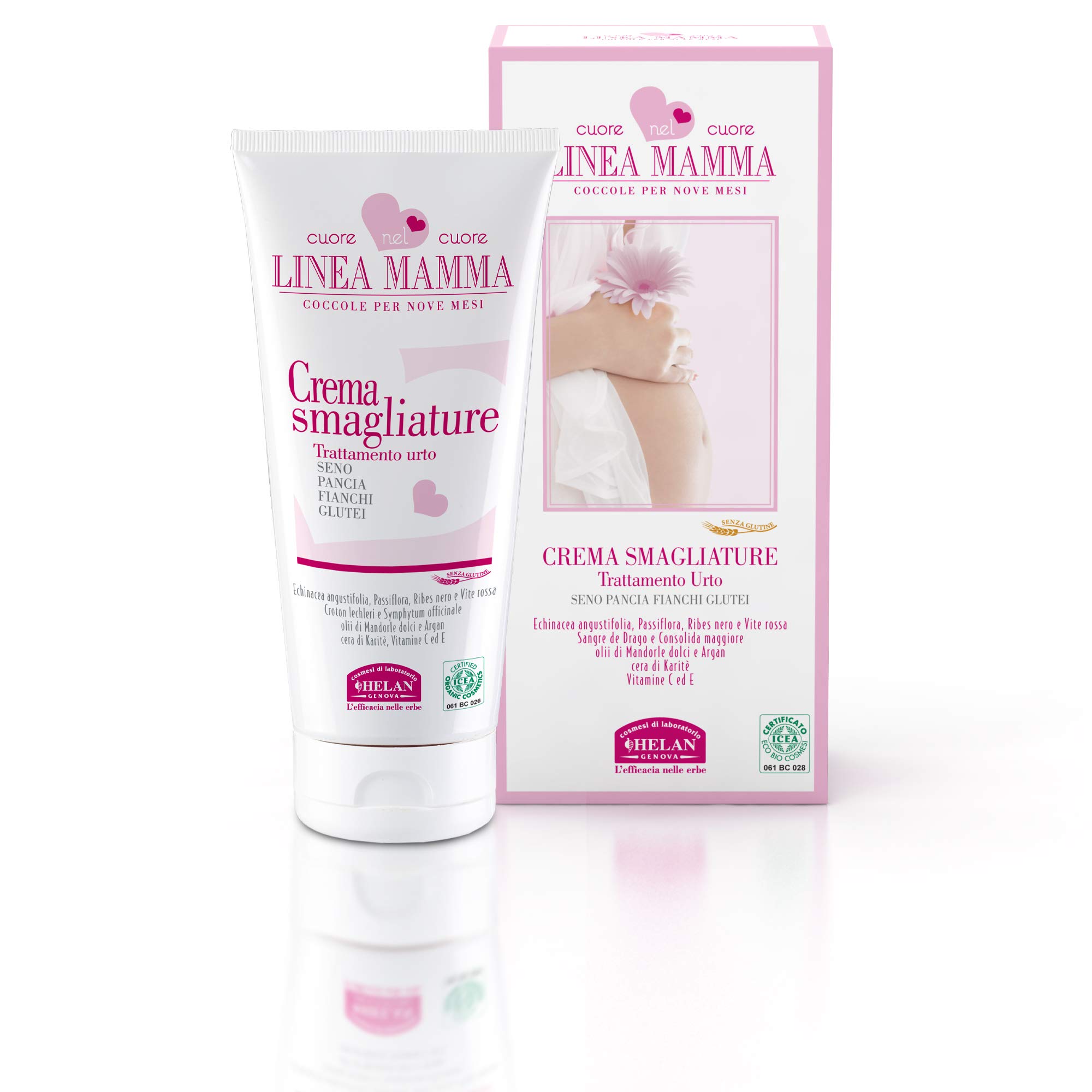 Helan - Linea Mamma Crema Tissue 150 mlFree from petroleum, silicones, mineral oils, lanolin, and PEGs. Free from parabens, fenoxyethanol, and EDTA. Intensive elasticizing treatment specially formulated to prevent skin sagging caused by the breakdown of edelasthene collagen fibers.Helan - Linea Mamma Crema Tissu 150 mlSans pétroles, silicones, huiles minérales, LANOLINE et PEG. SANS parabènes, FENOxyéthanol, EDTA. Traitement intensif élastiqué spécialement formulé pour : prévenir la relaxation cutanée provoquée par la rupture des fibres de collagène edelasthène.Helan - Linea Mamma Crema Tissu 150 ml