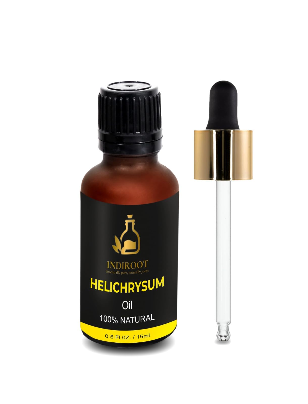 Helichrysum Essential Oil 100% Natural Amber Glass Bottle with Dropper (0.5 Fl Oz/15ml Helichrysum) Herbaceous 1 Fl Oz (Pack of 1)