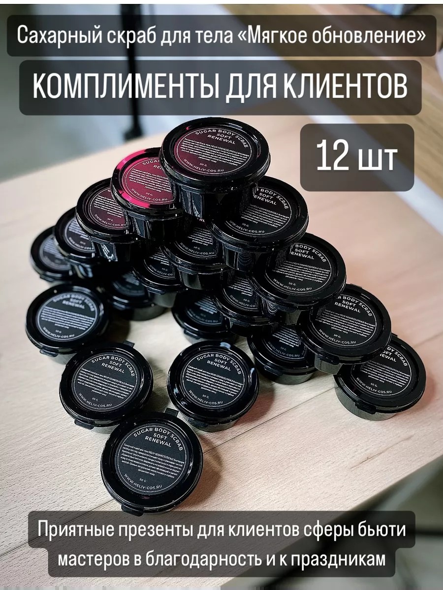 Мини-версия сахарного скраба для тела "Мягкое обновление" - это комплимент с заботой и любовью для ваших клиентов.