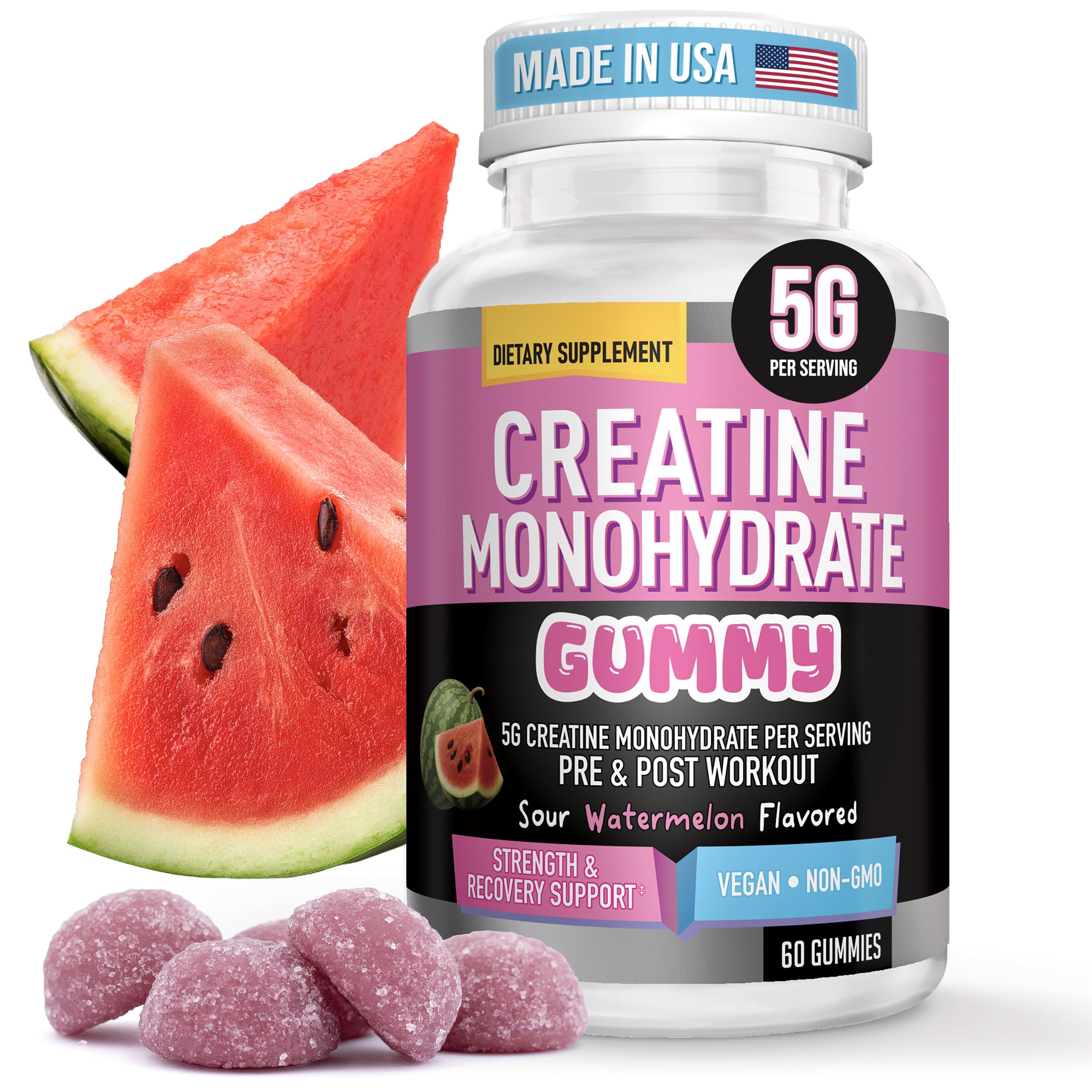 Helix Heal Creatine Monohydrate Gummies - 5g per Serving Vegan Non-GMO Strength Power & Recovery Support No Scoops or Mess Pre & Post Workout 60 Count Watermelon Flavor