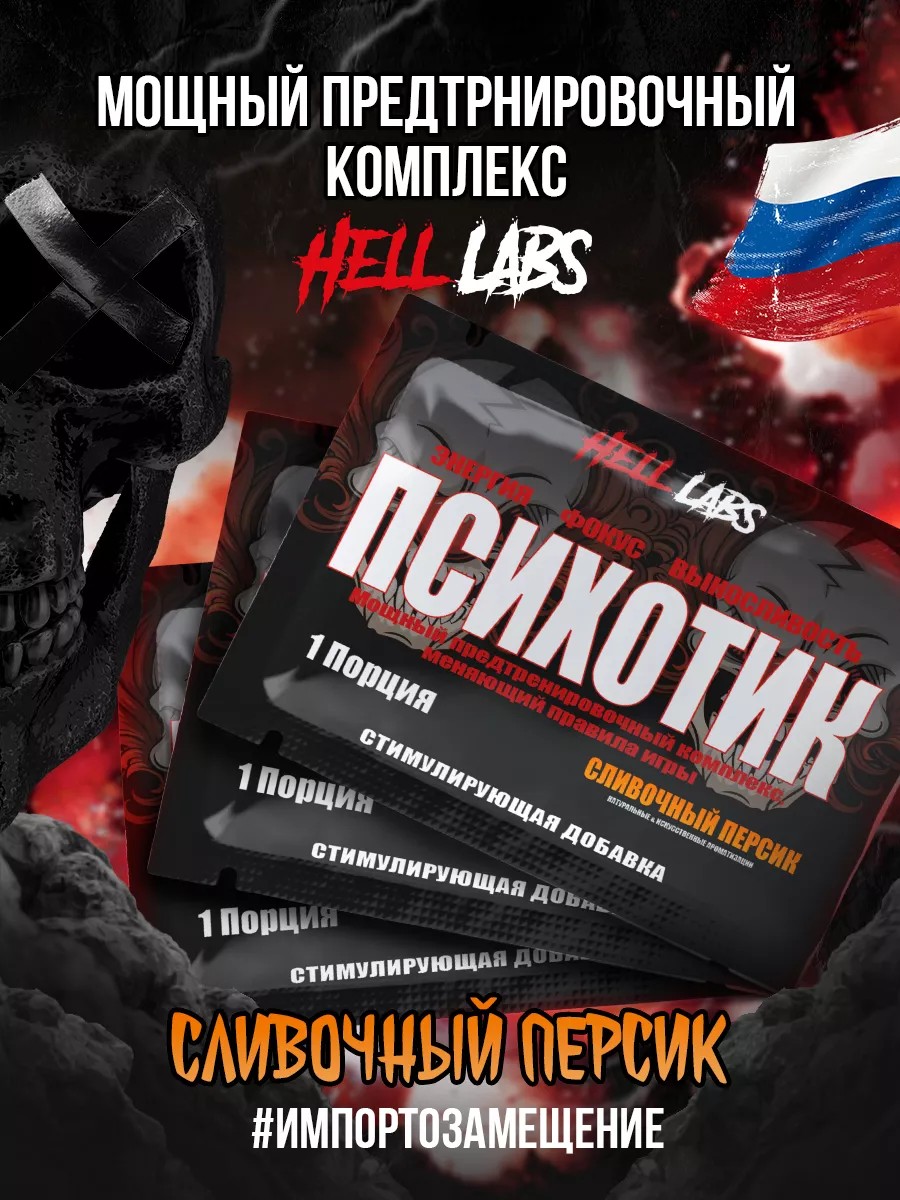 Хелл лабс Психотик 3 порции включает матрицу из разных компонентов для энергии, драйва, выносливости и силы! Давая необходимую поддержку организму во время тренировки, этот предтрен повышает работоспособность, снижает закисленность в мышцах, а так же усиливает фокус внимания.