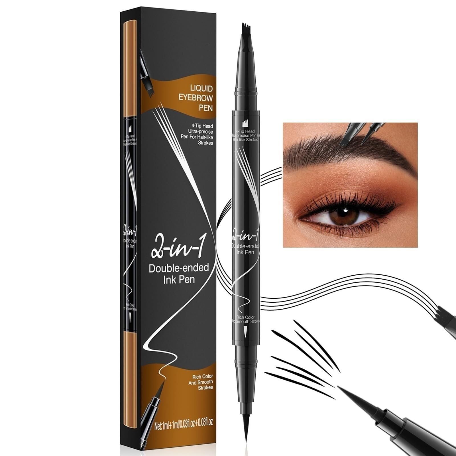 Hellokiss Liquid Eyebrow Pen,3D Microblading Eyebrow Pencil Upgraded Waterproofwith 4-Fork-Tip Precise Brush-Tip,Create Natural Hair-Like Brows Features: - Ensuring that your eyebrows stay defined and in place all day - The smooth and rich texture of the pencil ensures a seamless and flawless finish - By using our eyebrow contouring pen and pencil, you can enhance your eyebrows and create the appearance of fuller Specifications: Name: Eyebrow Microblading Pen Color: Light Brown Dark Brown Gray Black Application: Suitable for all skin types Type: Four pointed. Package included 1 2pcs Microblading Eyebrow Pencil Notes: 1. Please allow slight size errors due to manual measurement. 2. Due to differences between monitor displays, actual color may vary slightly from image.Thanks for your understanding.Tips---For best results, use the brow pen on clean, dry skin, from moisturizers or other skincare barriers. Apply directly onto your brow area for a smoother, more finish that stays flawless throughout the day. Waterproof Microblading Eyebrow Pencil---All-Day Waterproof and Long-Lasting. Our advanced formula ensures your makeup stays intact all day, even through sweat, rain, and water sports. Enjoy worry beauty with no smudging or fading, keeping your eyebrows perfect from morning till night. Hellokiss Liquid Eyebrow Pen---Adored by novices and experts alike, this microblade-inspired brow pen simplifies outlining and filling your brows with lifelike accuracy. Layering strokes adds depth and dimension, delivering crisp, authentic-looking eyebrows in record time. 2024 New Waterproof Eyebrow Pen---Experience the unique design of our Eyebrow Pen, featuring an innovative four-point pen tip that allows for effortless application. Brush your eyebrows with ease, ensuring clear roots and a natural, look. Its innovative 4-pronged 3D fork design allows for precise Application, effortlessly creating a natural-looking effect in no time. 4-Tip Upgraded Waterproof Microblading Eyebrow Pen---Elevate your brow game with our Hellokiss Liquid Eyebrow Pen, offering unparalleled precision compared to traditional pencils.s. Each stroke creates clear, defined eyebrows, drawing everyone's attention.