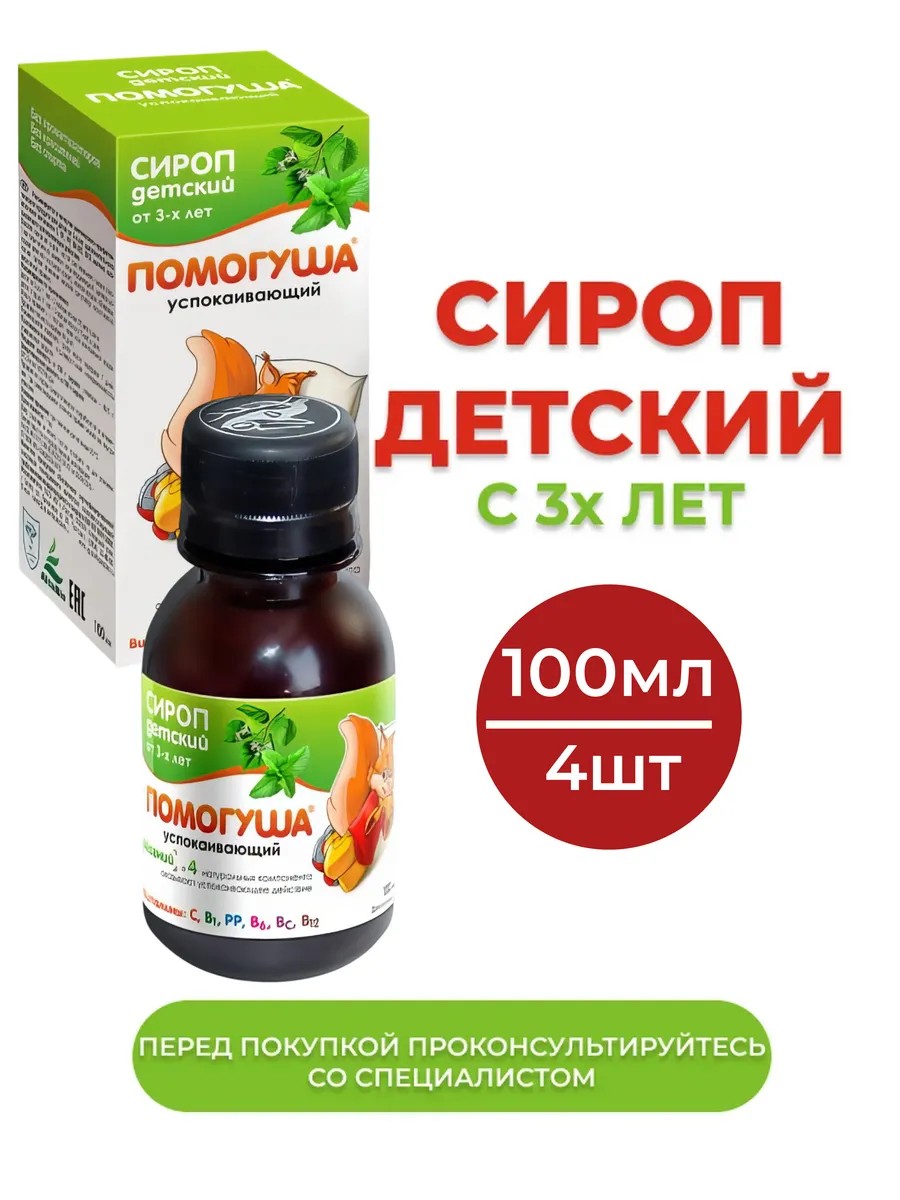 ПОМОГУША Помогуша сироп детский успокоительный 100 мл с 3-х лет-4шт