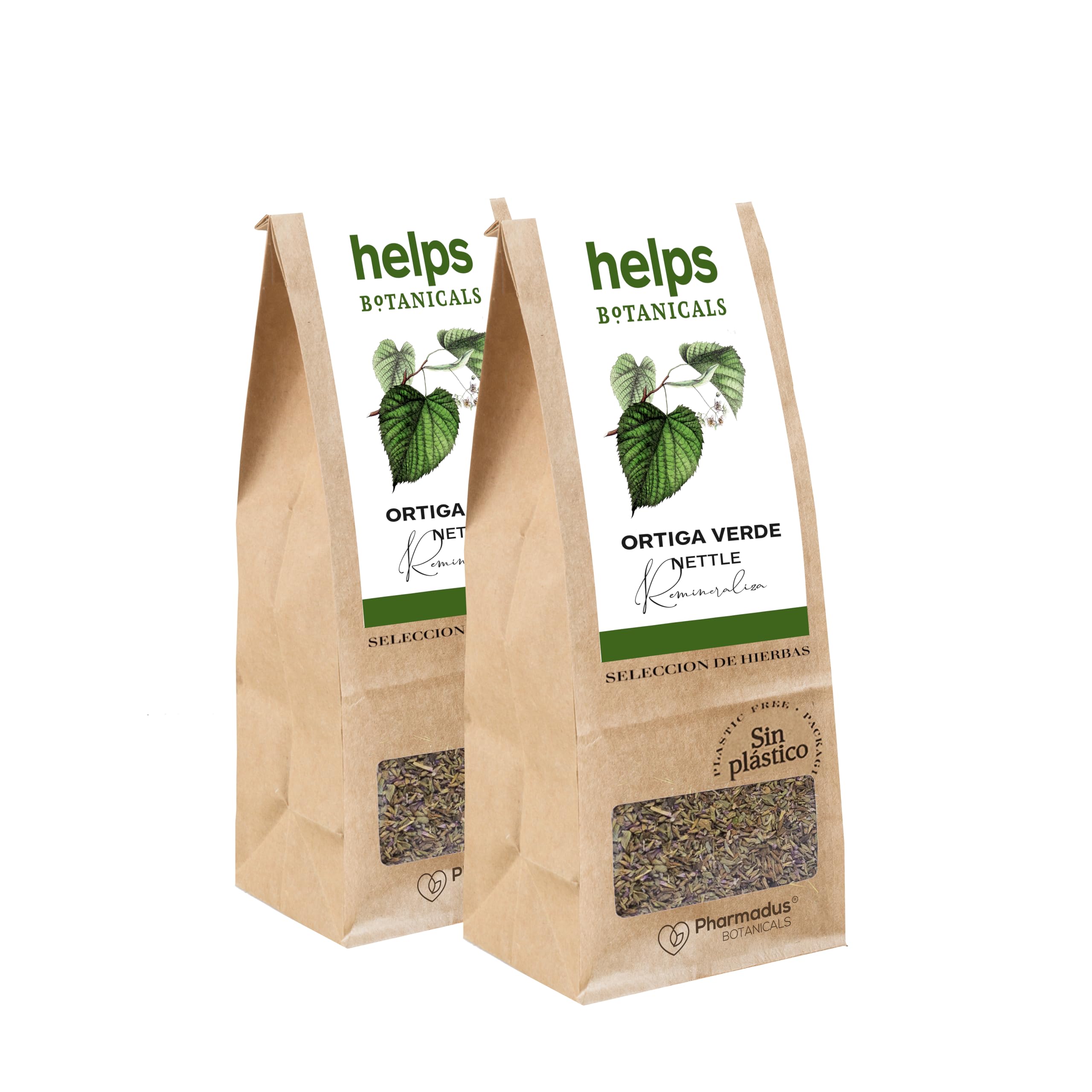 HELPS INFUSIONS - infusion d'ortie verte en vrac. Thé avec Ortie effet Diurétique. Sac en vrac 50 grammes. Pack 2.