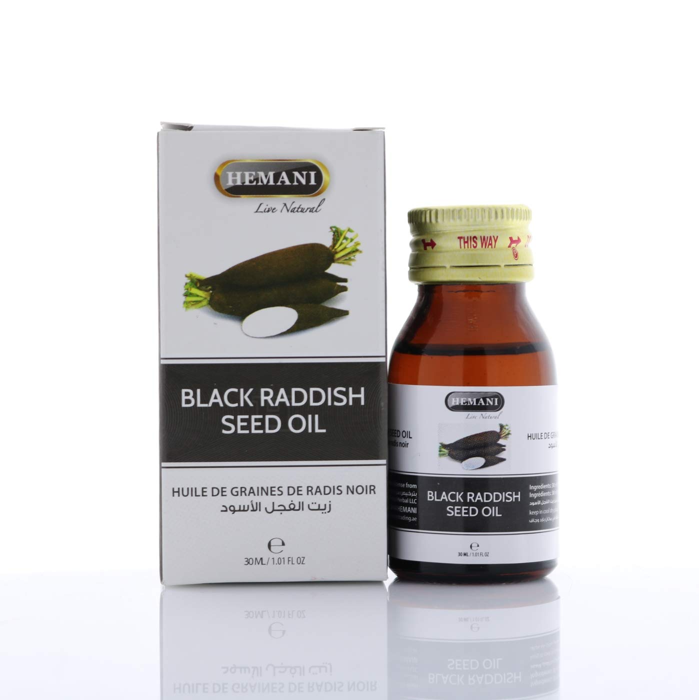 Hemani Black Radish Oil Raphanus sativus Zayt al-Fijl al-Aswad 30ml | 100% Natural Halal Essential Oil for Wellness Skincare Haircare and Culinary Delights.