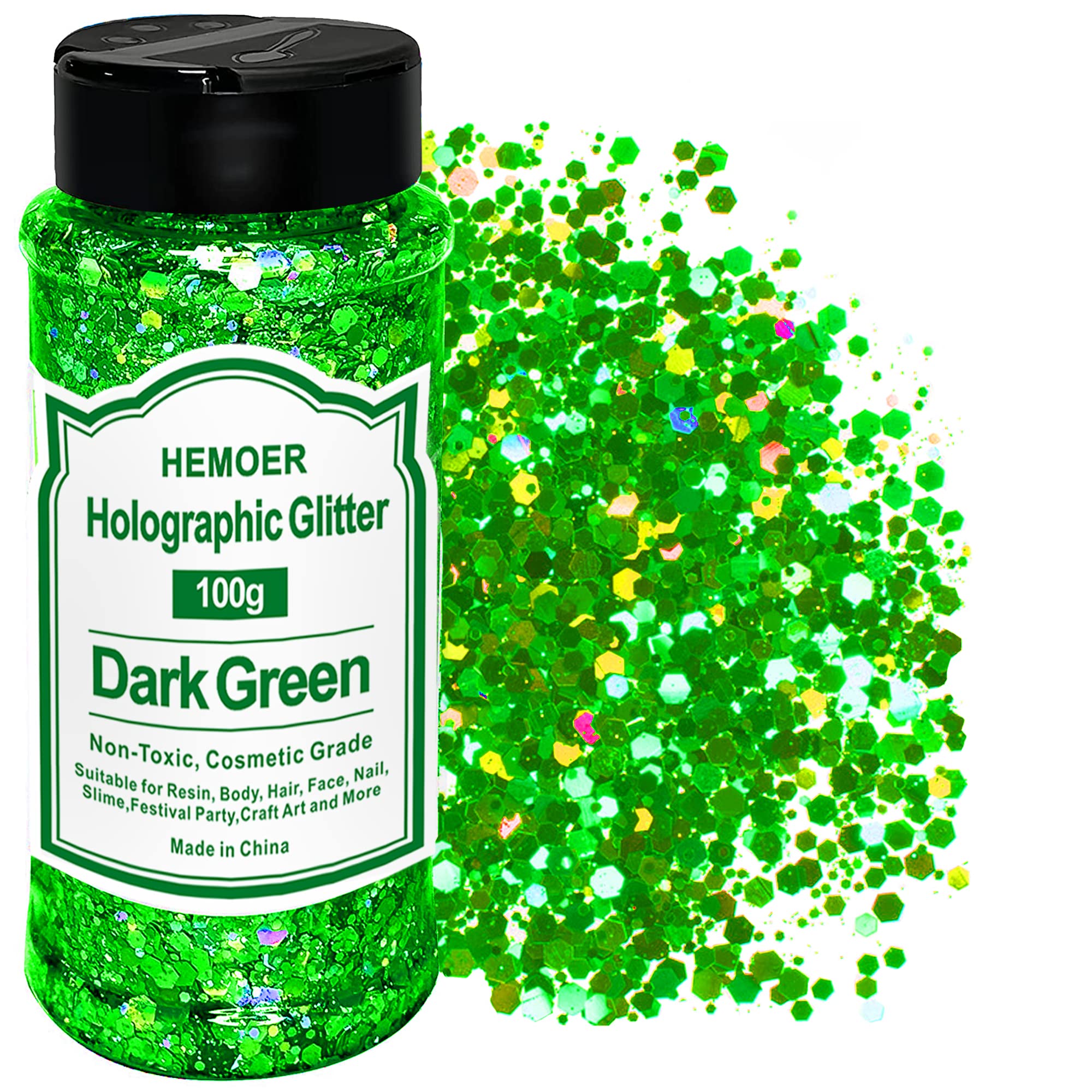 ?? Chunky Glitter has many usage purposes: suitable for face, body, eyeshadow, lips, cheeks, make-up, nail art, etc. or for decorating your house, from cell phone covers, glasses, greeting cards, body art, handicrafts, etc.Consists of PET material, is non-toxic and does not damage body or skin.is not dull under solvents such as epoxy resin or nail polish.?? Holographic glitter: Different sizes of sparkling glitter and hexagon are mixed to give brilliant holographic light.The sparkling glitter in mixed sizes offers endless opportunities for beauty and makes them an eye -catcher for every occasion.?? Practical and environmentally friendly packaging: thick glitter is delivered in transparent, sealed bottles that are durable and difficult to lick.It is convenient to close again after use, it is environmentally friendly and does not waste.? High quality chunky glitter: Chunky glitter is made of high-quality material and holographic and light shine, which is durable enough for long use, would not break.You can use hair-hair spray or glitter primer to extend the duration of the sequins.You can easily remove all glitter effects with water or a mild make-up remover.?? Chunky Glitter hat viele Verwendungszwecke: Geeignet für Gesicht, Körper, Lidschatten, Lippen, Wangen, Make-up, Nagelkunst usw. oder zum Dekorieren Ihres Hauses, von Handyhüllen, Brillen, Grußkarten, Körperkunst, Kunsthandwerk usw. ?? Sicher genug: Unser Glitzer besteht aus PET-Material, ist ungiftig und schädigt weder Körper noch Haut. wird unter Lösungsmitteln wie Epoxidharz oder Nagellack nicht stumpf. ?? Holographischer Glitter: Verschiedene Größen von funkelndem Glitter und Sechsecken werden gemischt, um brillantes holographisches Licht abzugeben. Der funkelnde Glitter in gemischten Größen bietet endlose Möglichkeiten für Schönheit und macht Sie zu einem Blickfang für jeden Anlass. ?? Praktische und umweltfreundliche Verpackung: Dicker Glitzer wird in transparenten, versiegelten Flaschen geliefert, die langlebig und schwer zu lecken sind. Es ist bequem nach dem Gebrauch wieder zu verschließen, es ist umweltfreundlich und verschwendet nicht. ? Hochwertiger Chunky-Glitter: Chunky-Glitter besteht aus hochwertigem Material und holographischer und leichter Glanz, der für einen langen Gebrauch haltbar genug ist, würde nicht brechen. Sie können Haar-Haarspray oder Glitter-Primer verwenden, um die Dauer der Pailletten zu verlängern. Sie können alle Glitzereffekte leicht mit Wasser oder einem milden Make-up-Entferner aus dem Gesicht entfernen.HEMOER Holographic Chunky Glitter, Dunkel Grün 100g Chunky Pailletten Glitter, Craft Glitter für Harz, Gesicht, Nagel, Körper, Kunsthandwerk, Slime Festival Party Art, Glitzerpuder für Nägel Glitzer Dunkelgrün