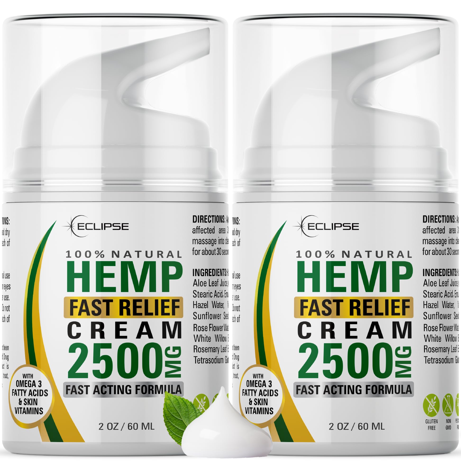 Hemp Cream by Eclipse - Non-Greasy Targeted Long-Lasting Relief - Natural Hemp Extract Cream - Made in USA - 2 Pack