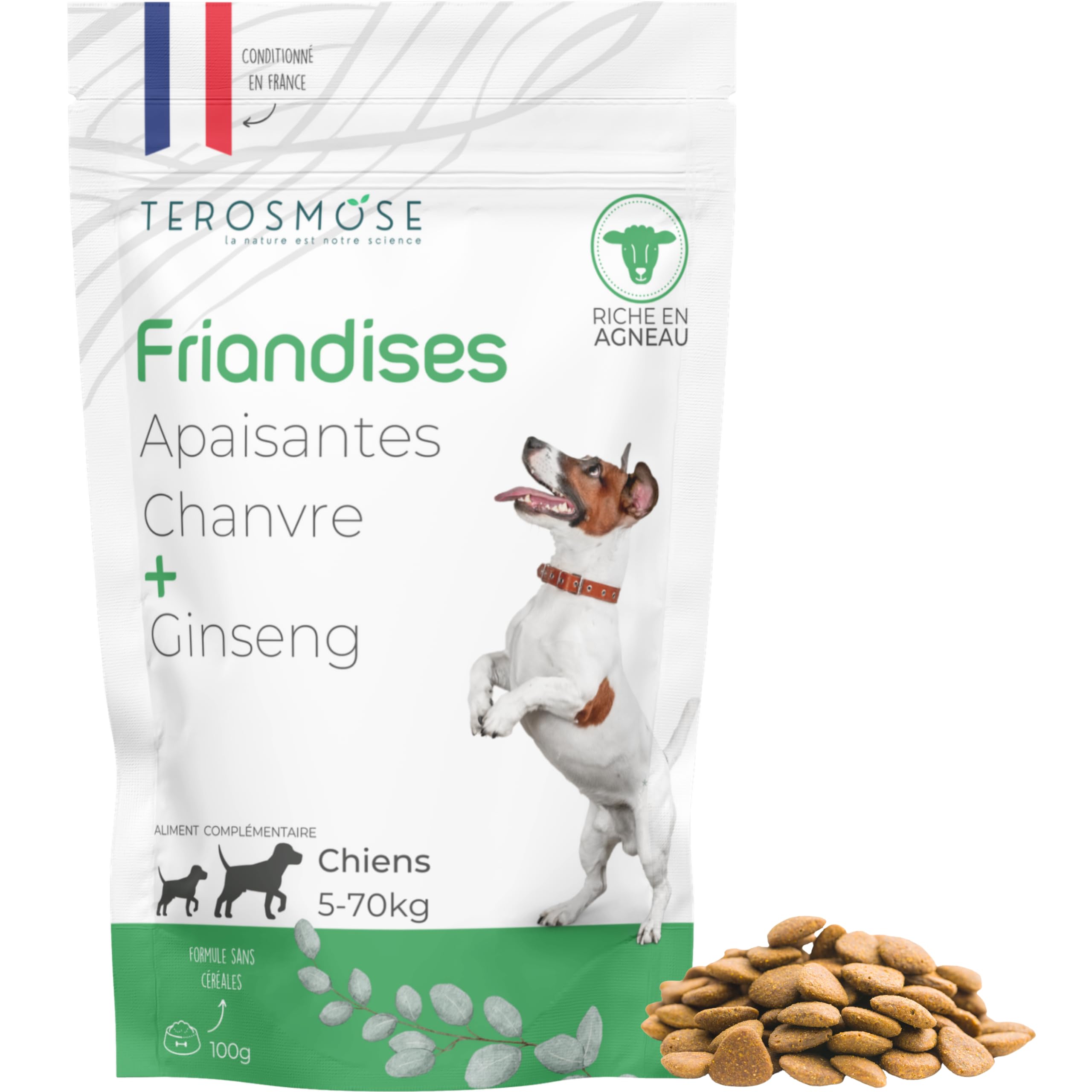 Take action today : Treat your dog to premium nutrition that improves their mental and physical health. Choose hemp kibble with a delicious lamb flavor for a happier, fitter companion. Reduce Excessive Barking : Hemp kibble is known to reduce excessive barking, improving the peace and quiet of your home, helping your dog stay calm and relaxed, even when you're not home. Fight Separation Anxiety : Our special formula helps relieve separation anxiety, helping your dog stay calm and relaxed, even when you're not home. Increased Mobility Comfort : Promote your dog's mobility and comfort with a diet rich in protein and fiber, ideal for joints and muscles. Reduce stress and aggression : Soothe your dog naturally with our hemp recipe that targets stress and aggression, improving their quality of life.Passez à l'action aujourd'hui : Offrez à votre chien une alimentation de qualité supérieure qui améliore sa santé mentale et physique. Faites le choix de croquettes au chanvre au délicieux goût d'agneau pour un compagnon plus heureux et en meilleure forme. Réduisez les aboiements excessifs : Les croquettes au chanvre sont connues pour réduire les aboiements excessifs, améliorant ainsi la tranquillité de votre foyer aidant votre chien à rester calme et détendu, même lorsque vous n'êtes pas à la maison. Contre l'anxiété de séparation : Notre formule spéciale contribue à soulager l'anxiété de séparation, aidant votre chien à rester calme et détendu, même lorsque vous n'êtes pas à la maison. Mobilité et confort Accrus : Favorisez la mobilité et le confort de votre chien avec une alimentation riche en protéines et en fibres, idéale pour les articulations et les muscles. Réduisez le stress et l'agressivité : Apaisez votre chien naturellement grâce à notre recette au chanvre qui cible le stress et l'agressivité, améliorant ainsi sa qualité de vie.