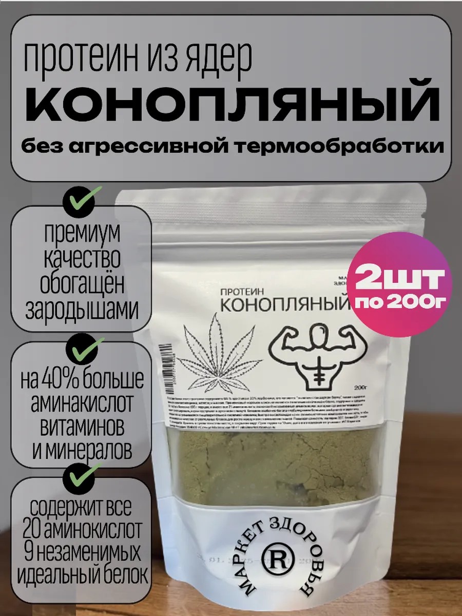конопляный протеин из ядер и зародышей конопли 2шт