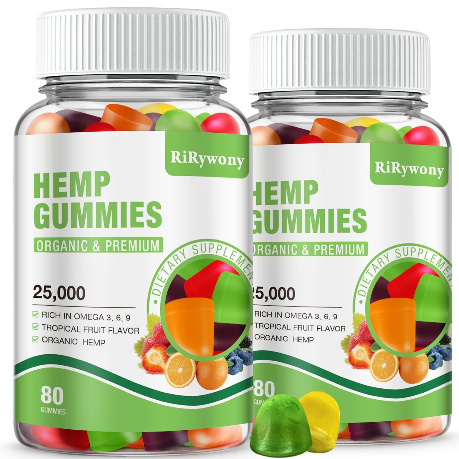 QUALITY ASSURANCE - We take your buying experience very seriously. If you have any queries about our products or face any issues post-purchase, please feel free to contact us. Our team will provide you with a prompt and satisfactory response within 24 hours. We are committed to improving human health. hemp gummies can help you relax and feel happy and release stress. Also, enhance your productivity with more focus and better memory. This is why RiRywony Health hemp gummies is why it is loved by every customer. TECHNICAL EXCELLENCE - Our researchers observe plants throughout the growing season, advanced CO2 extraction technology to retain the full range of nutrients, Ensure the purity and efficiency of hemp gummies ingredients. Natural fruit flavor, GMO free, Gelatin-Free. UPGRADED FORMULA - Upgrade RiRywony Health Hemp Gummies Formula: Fatty acids OMEGA 3-6-9. Extra vitamin C, E supplements to improve the body's nutritional needs. Promote overall health in an efficient manner,make you full of energy every day. MAX 200X POWER - 100 natural 25,000 hemp oil extract infused gummies, each hemp gummies is guaranteed to have maximum effectiveness. Each bottle 80 gummies. Higher potency than other hemp gummies.