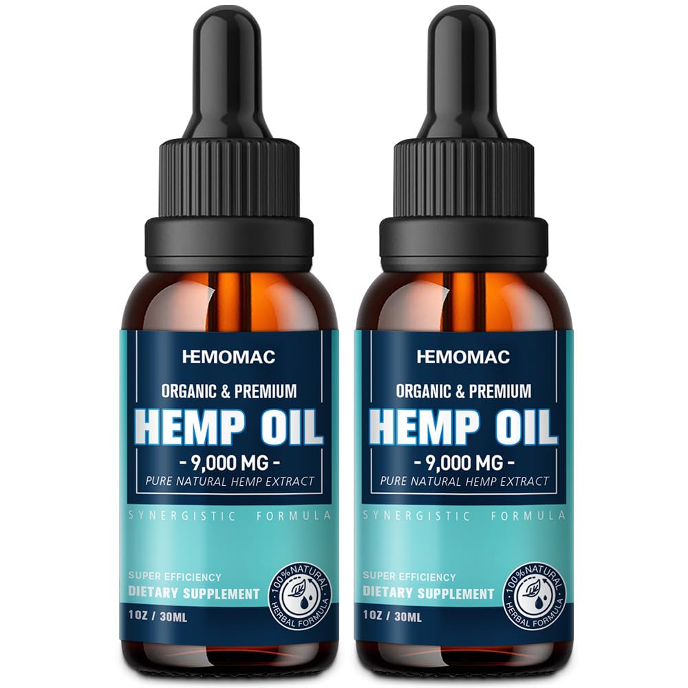 Hemp Oil (2-Pack) High Potency for Pain Sleep Anxiety Relief- Maximum Strength Natural Hemp Oil Drops and Organic Hemp Tincture Vegan Non-GMO