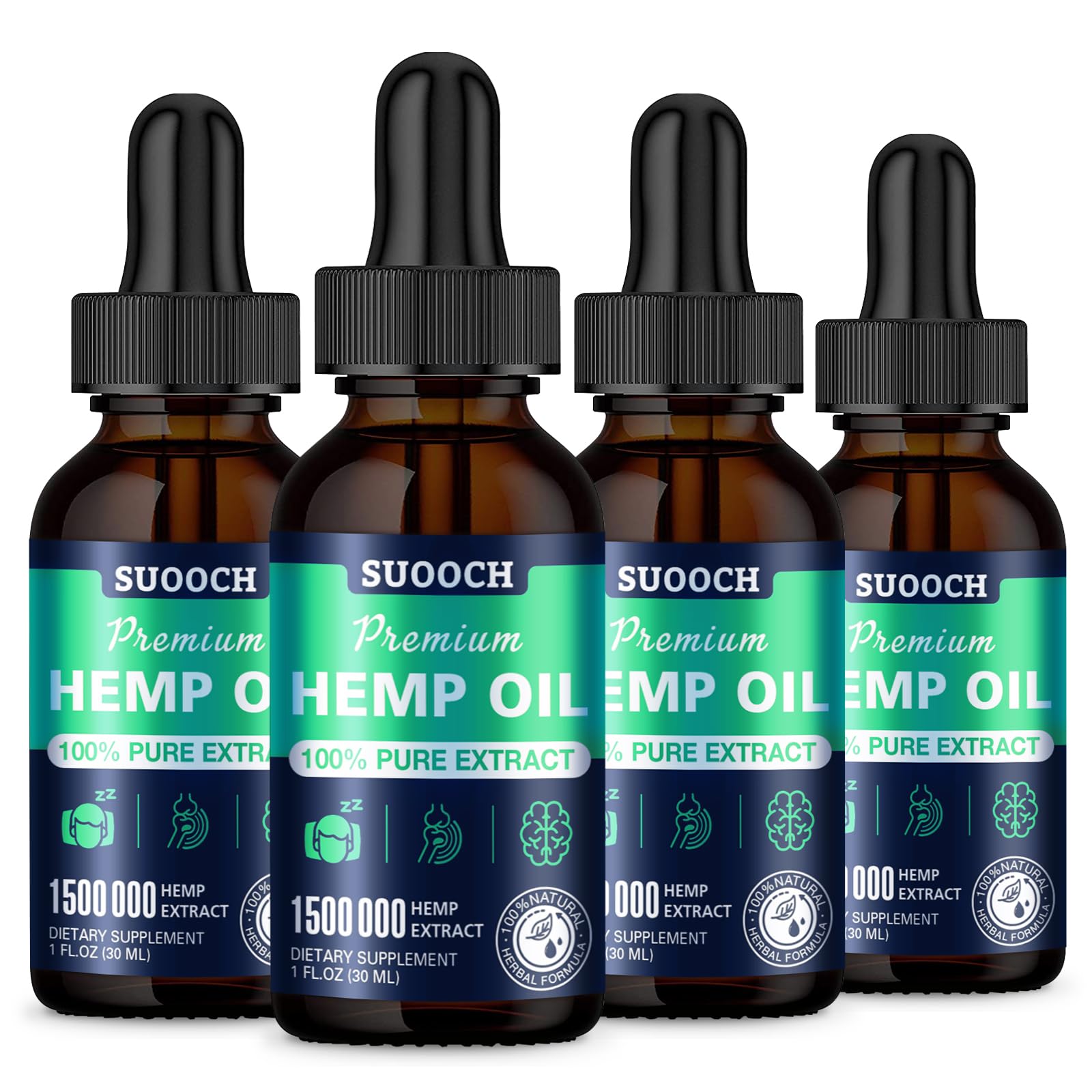 Hemp Oil Drops for Adults-Maximum Strength 100% Natural Organic Vegan Non-GMO(4-Pack)