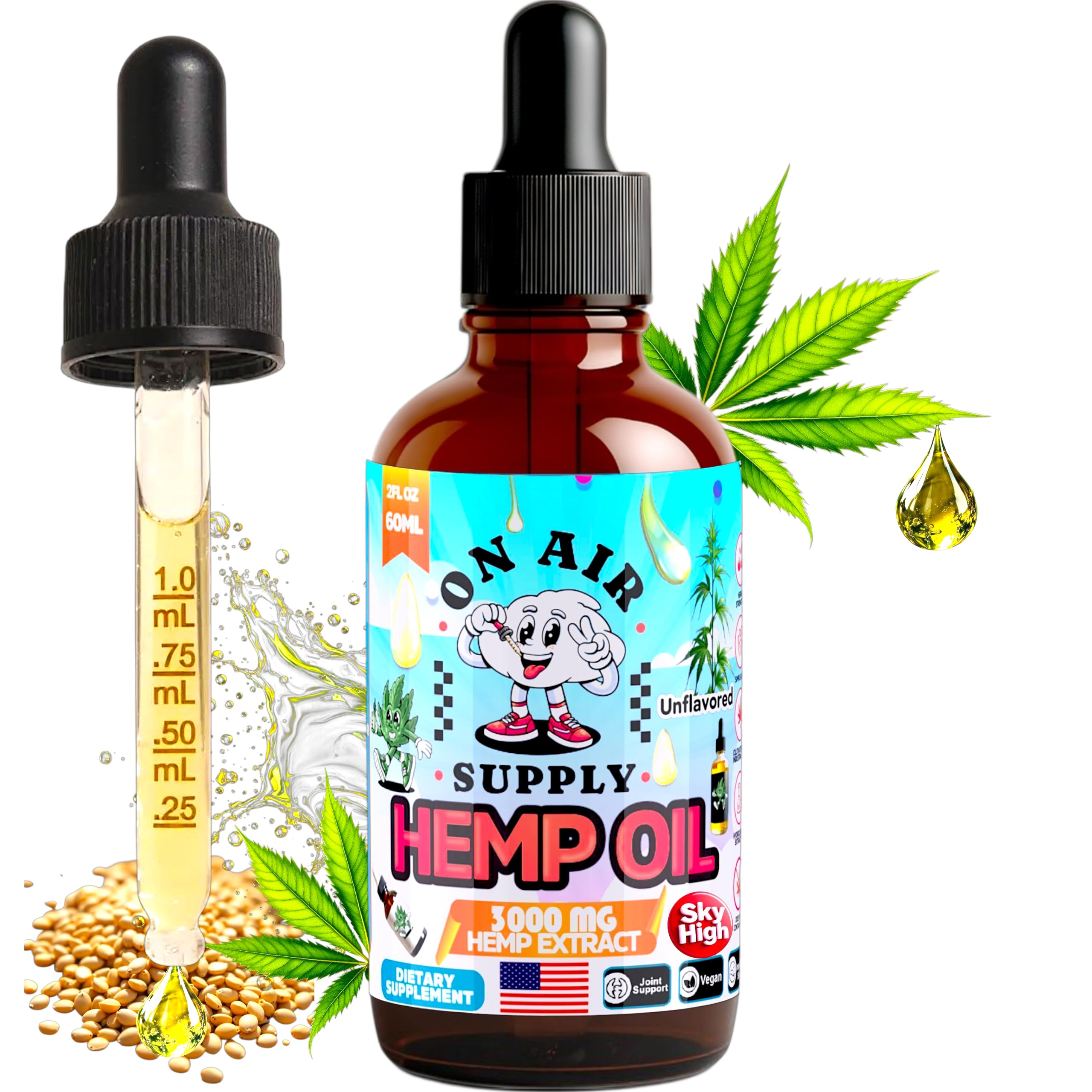 Hemp Oil - Organic Unflavored 2FL/60ML 3 000MG High Potency Drops Full-Spectrum Extract Hemp Oil for Skin & Hairs with Omega 3-6-9 & Vitamins C+E Natural Immune & Sleep Support Made in USA