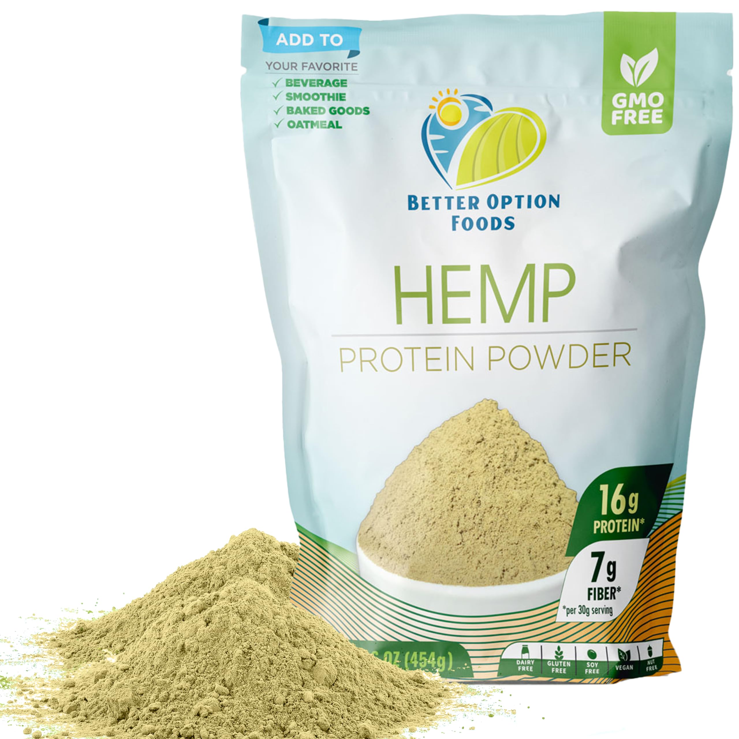 Choose the Better Option: Dedicated to nourishing families, we've harnessed the potential of hemp seeds to craft delightful recipes to offer delicious, nutrient-rich hemp seed products. At Better Option Foods, EVERY ingredient matters. Crafted with Care: Our hemp products are our labor of love, meticulously packed to prioritize your wellness. We're dedicated to delivering non GMO hemp protein powder with fiber with zero gluten, nut, dairy and vegan friendly. Enjoy Smooth Digestion: Take charge of your dietary journey with our protein powder plant based formula. It delivers 7g of easily digestible fiber in every 30g serving, making it the perfect choice for those seeking high fiber foods. A Versatile Superfood: Cook and prepare your favorites with our hemp seed protein powder. Expand your flavor horizons with our subtly nutty hemp fiber powder for your protein shake, smoothie, baked goods, or oatmeal. Pump Up Your Day: Discover the power of nourishment with our hemp powder. Each serving delivers 16g of protein, 7g of fiber, and 20 amino acids, vitamins and minerals, ensuring sustained energy with no added sugar.