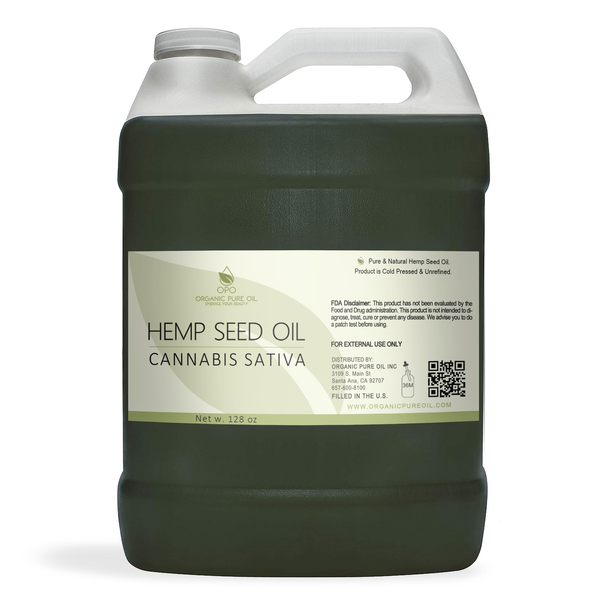 Hemp Seed Oil - 100% Pure Unrefined Cold Pressed Organically Sourced All-Natural Non-GMO Extra Virgin Undiluted Carrier Oil - Bulk 128 oz / 1 Gallon - Tinctures Blends DIY Essential Oils
