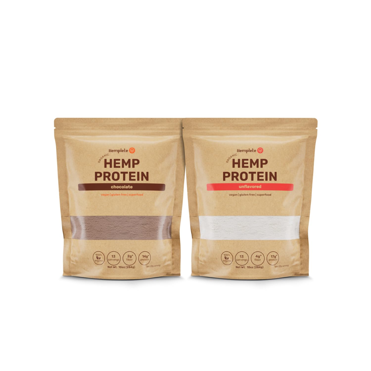 Save 10 by bundling the hemplete Hemp Vegan Protein Powder Unflavored 10oz and Chocolate 10oz.