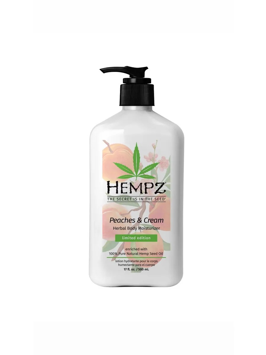 HEMPZ Peaches & Cream Body Lotion is a sophisticated moisturizer designed to nourish and rejuvenate all skin types. A blend of natural ingredients, including hemp oil and peach extracts, deeply hydrates and softens skin, leaving it smoother and firmer. This cream not only moisturizes but also protects skin from external influences, leaving a pleasant scent of peaches and cream. Its versatility makes it suitable for daily use, helping to maintain the health and beauty of your skin. The scent is sweet, floral, and fruity.
