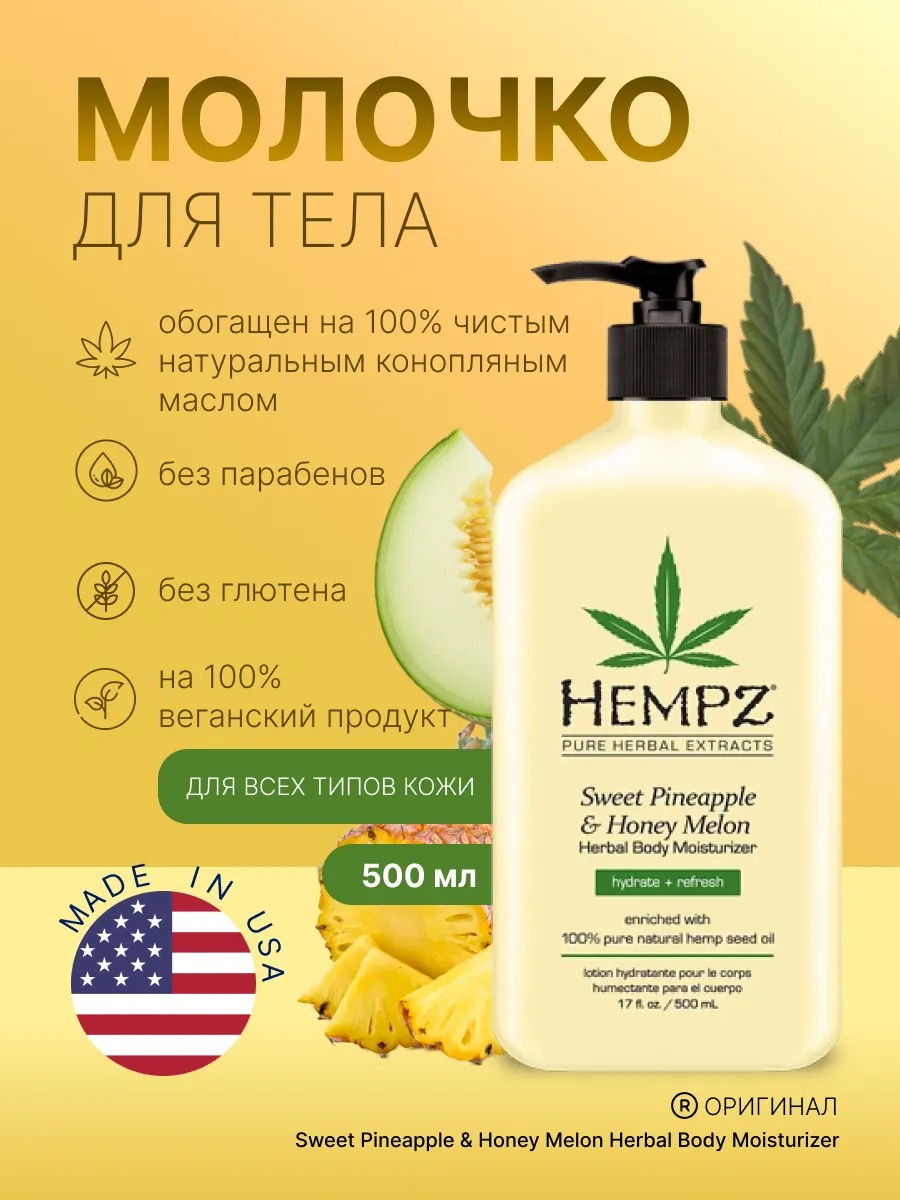 Хемпз лосьон для тела со вкусом ананаса и сладкой дыни.