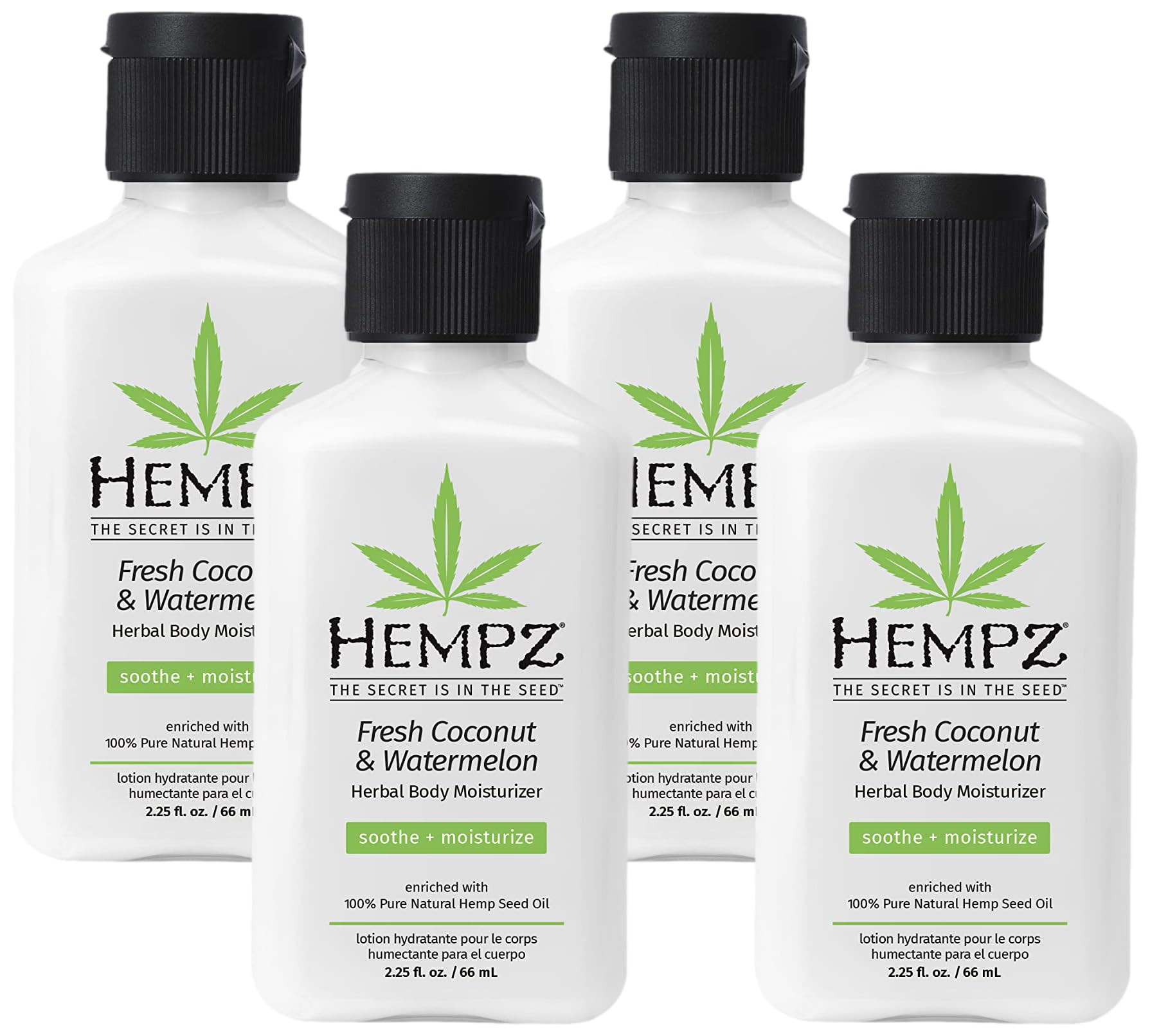 Hempz Herbal Body Moisturizer Pearl White Fresh Coconut/Watermelon 2.25 Ounce (Pack of 4)