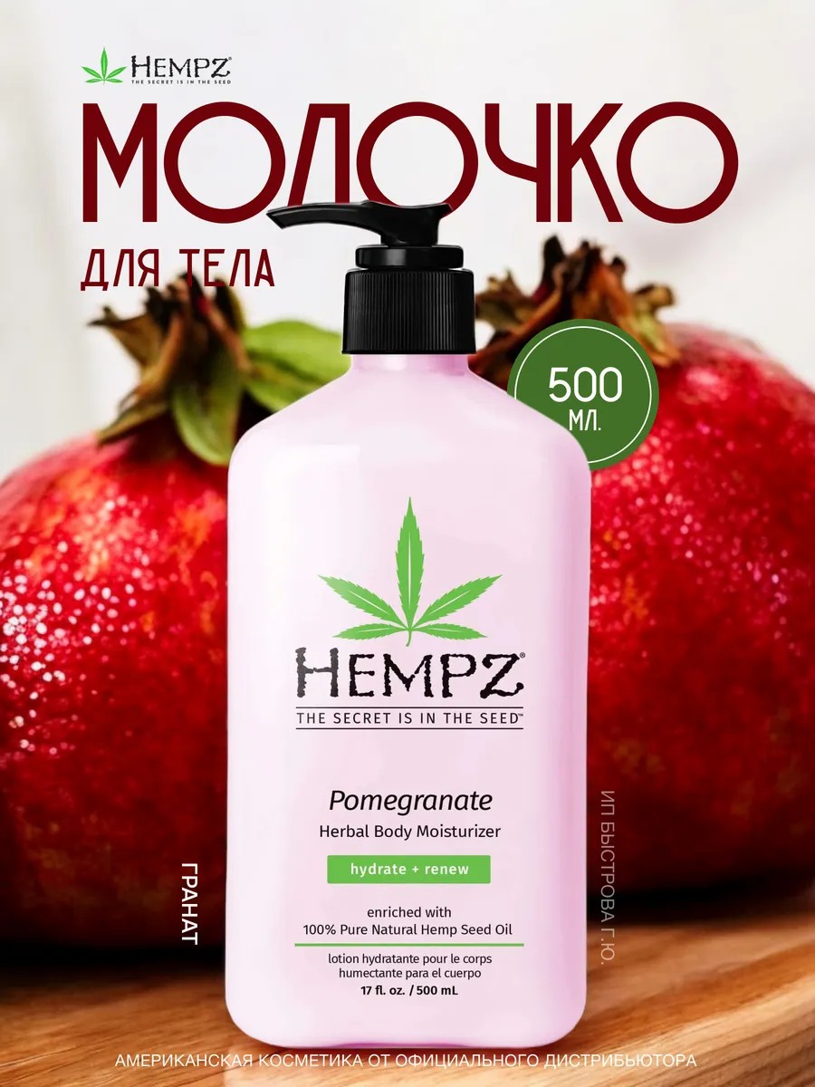 Лосьон для тела HempzPomegranate помогает коже выглядеть и пахнуть наилучшим образом. Он увлажняет и питает все типы кожи с помощью растительных ингредиентов, включая 100% чистое масло семян конопли.
