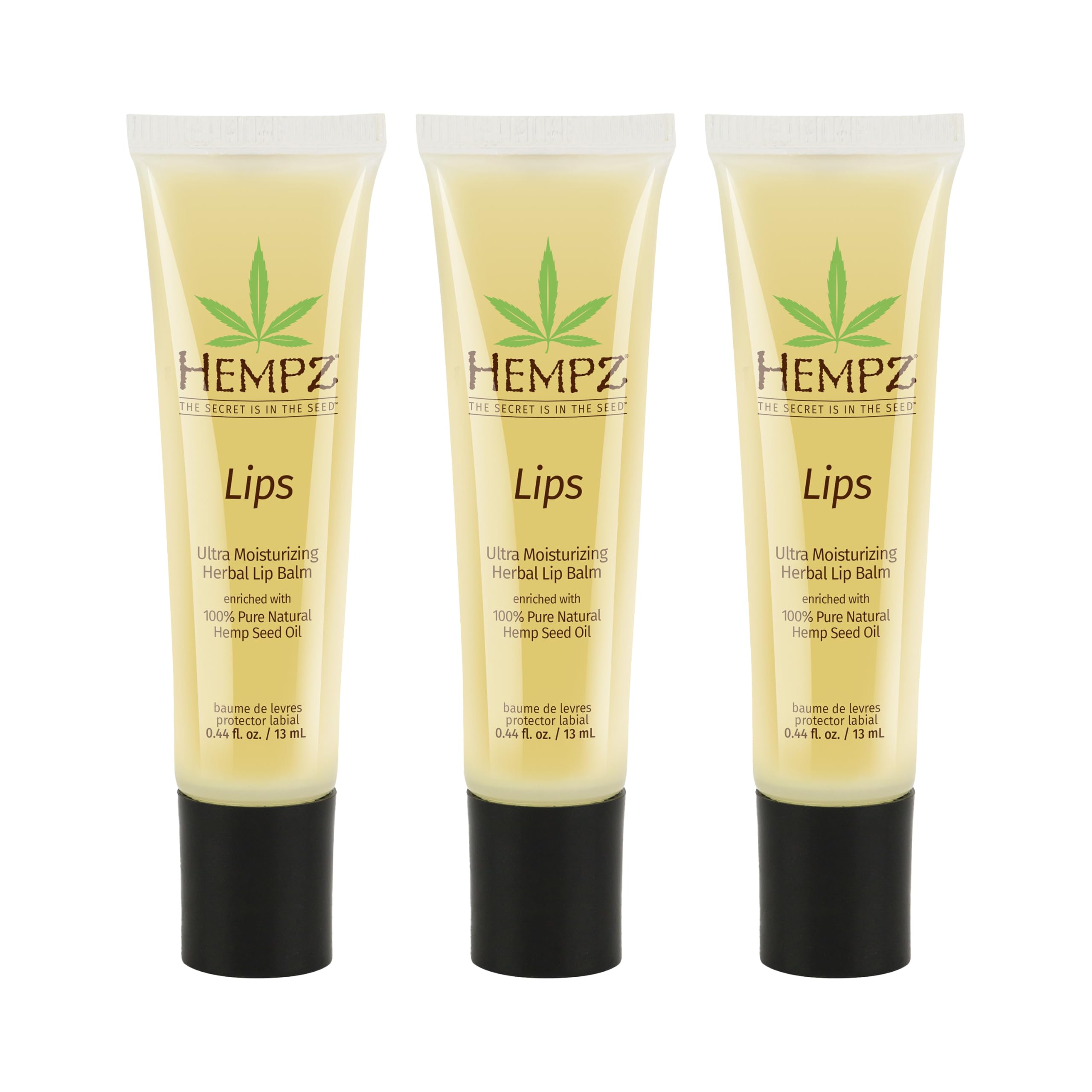 Hempz Original Lip Balm 3-Pack travel essential for dry cracked lips ultra hydrating gloss .44 oz