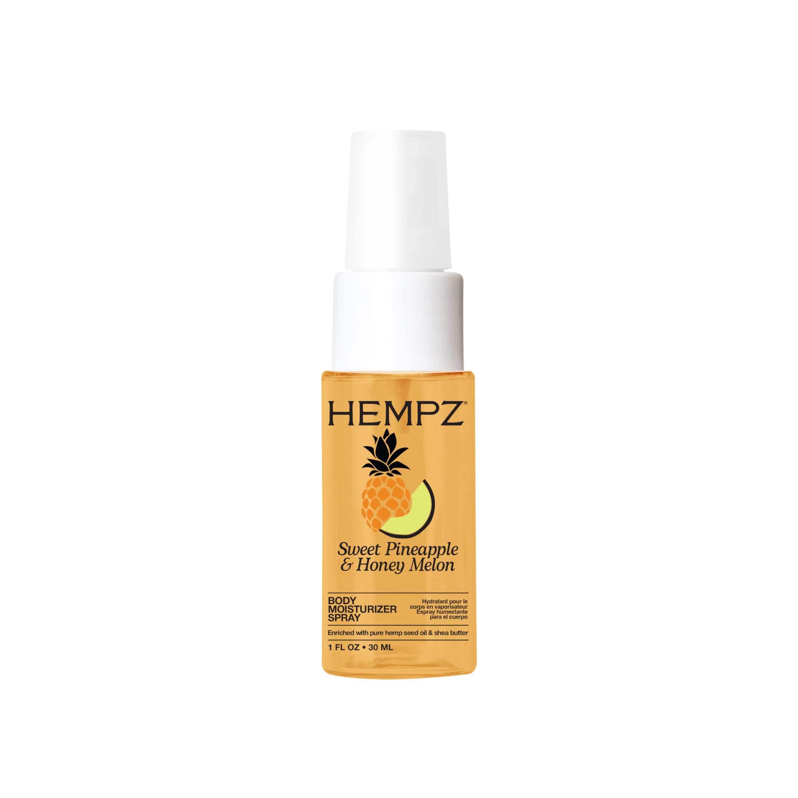 HEMPZ CONSCIOUS CHOICE: Vegan, Cruelty-Free, and Free from alcohol, phthalates, and parabens. NON-GREASY: Ultra-light, fast-absorbing spray offers up to 24-hour hydration without alcohol. KEY INGREDIENTS: Pineapple and Melon Extracts improve skin health. Hemp Seed Oil and Shea Butter lock in moisture. SCENT: Sweet Pineapple Honey Melon With notes of juicy melon, fresh pineapple, and ripe mango. ALCOHOL FREE: Elevate your self-care routine with a deliciously scented body moisturizer spray that won't dry out your skin. Lightweight hydration that doubles as a fragrance mist. Our spray on mist in a mess free format. Made with nourishing hemps seed oil and absorbs in seconds!.
