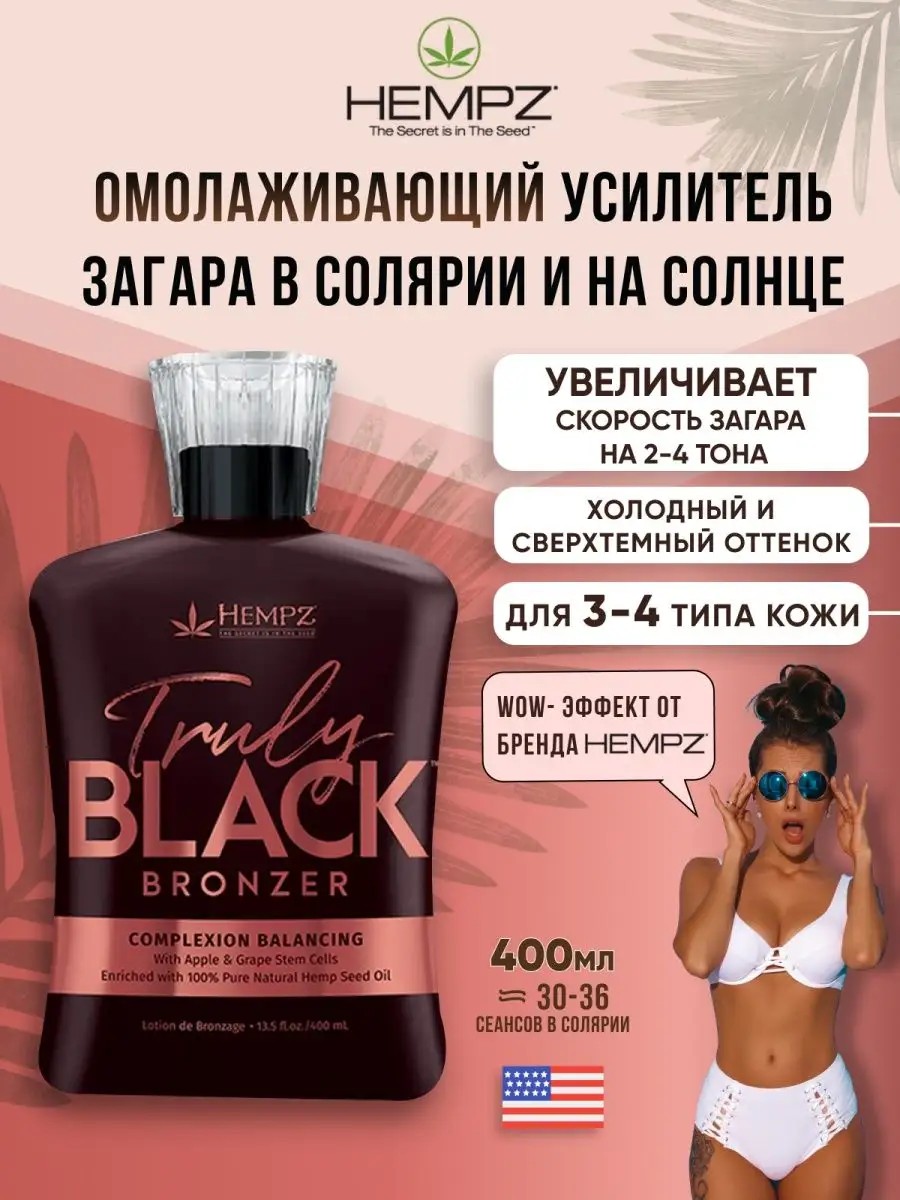 Добейтесь быстрого моментального загара в солярии без вреда для здоровья, вместе с увлажняющими кремами усилителями загара от профессиональной уходовой косметики Hempz. Питательный крем лосьон для солярия содержит мощную смесь натуральных бронзаторов, аминокислот и DHA, благодаря которым запускается интенсивная выработка меланина. Он придает максимально темный цвет с продолжительным проявлением загара даже после воздействия УФ-излучения. Бронзер имеет натуральное косметическое масло для тела из семян Hemp, которое выполняет полноценный уход за кожей тела и обладает регенерирующим действием. Прекрасно увлажняет и питает кожу, восстанавливает упругость и эластичность. Экстракт яблока и виноградных косточек в уходовом бронзирующем средстве для загара лица и тела помогают защитить кожу от фотостарения, делая ее гладкой и сияющей. Крем для тела с маслами имеет легкую текстуру, мгновенно впитывается и не оставляет липкости. Наносить активатор загара необходимо непосредственно перед сеансом инсоляции, на чистую и сухую кожу, после предварительно принятого душа. Также бронзирующий крем лосьон прекрасно подойдет для загара на солнце.