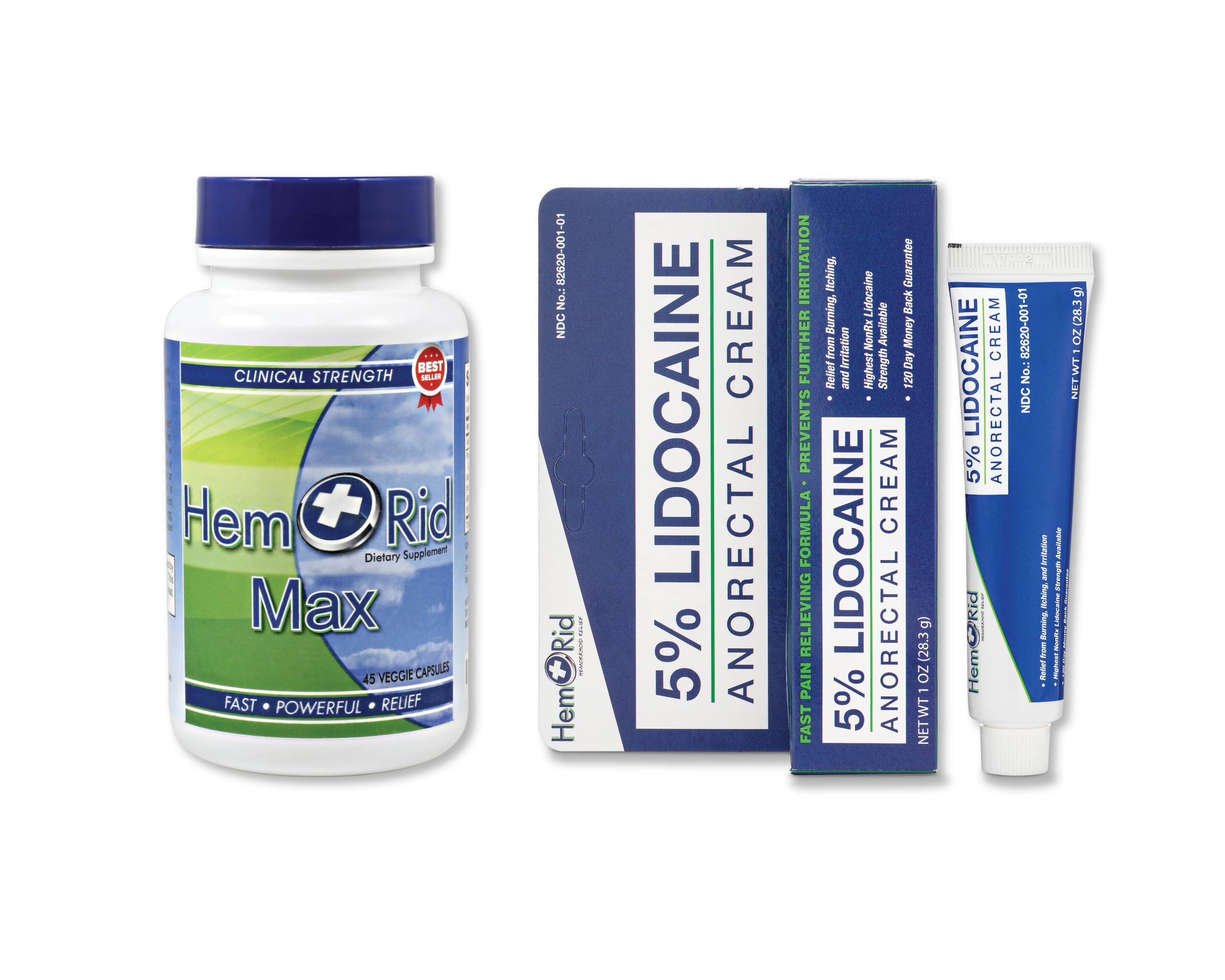 HemRid Max and Maximum Strength Lidocaine Cream - Hemorrhoid Relief Bundle for Fast Internal & External Support - Hemorrhoid Pills & Hemorrhoidal Lidocaine Cream for Rapid Comfort & Soothing Care