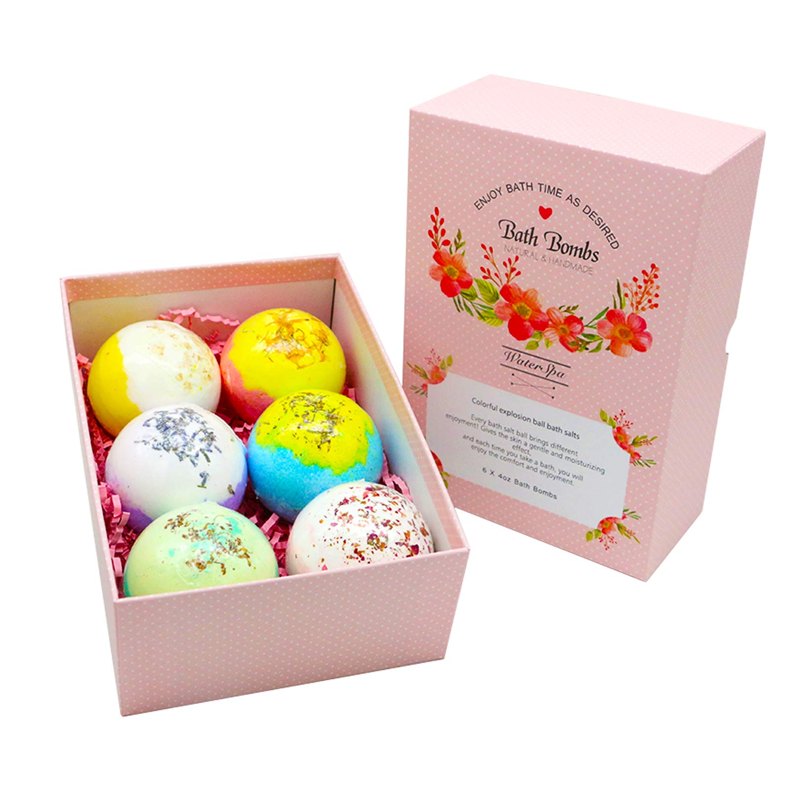 Features: 6 pieces per set, ball diameter: 6 cm, weight: 110 g Suitable for ages 16 and up, all skin types can be used Product function: can be used for foot baths, baths, hot springs, facial washing, etc. Promotional gifts: Valentine's Day, Mother's Day, birthdays, parties, weddings, Thanksgiving, Christmas, New Year's, and other holiday gifts. Product Ingredients: Sodium palm oil, sodium palm kernel oil, citric acid, sea salt, olive oil (Olea europaea), fruit oil, sucrose, glycerin, water, trehalose, natural plant extracts (natural mineral ingredients: leave skin smooth and soft) Instructions: 1. [How to use the bath] Fill the bathtub with warm water, add a generous amount of bath salt. The bath salt will gradually dissolve in the water, releg many bubbles and a pleasant fragrance. At this point, go to the pool and begin enjoying the unique experience of a warm foot bath. 2. [How to Use the Foot Bath] Pour an appropriate amount of warm water into the b, add 1 to 2 grains of blasting salt, and soak the middle part of your foot for 10 to 15 minutes. (When the salt is added to the water, the water will bubble up from the inside, creating a feeling of boiling. Place your foot in the water it will be refreshing and moisturizing, leaving your feet soft and comfortable afterward.) Tips: 1. One to three times a week, soak your feet for 20 minutes, maintaining a water temperature of 36 to 40 C. Rinse with water after soaking. (Generally, use 2 to 3 times per week.) 2. Precautions: This product is for external use only and should not be used on skin with abnormalities such as broken lips, macula, inflammation, swelling, pain, or sunburn. 3. Please use immediately after opening. Please store this product in a cool place, away from direct sunlight.Unique gifts, our bath bombs are suitable for women, men, children, and teenagers. The exquisite gift set makes a wonderful surprise for family and friends for Christmas, birthdays, Valentine's Day, Mother's Day, holidays, weddings, and anniversaries. No need to spend a lot of time and money on a luxurious bath simply fill your bathtub with warm water, add the essential oil bath bombs, lie back, and enjoy a bath filled with an intoxicating aroma that will help relieve tension and anxiety. The perfect balance of ingredients ensures a great foaming and bubbly effect. When placed in the water, they produce rich bubbles, providing a fragrant and enjoyable bath. Most importantly, these bath salts are used up after use. They won't stain your skin or your bathtub. Organic and natural, they are rich in various organic ingredients, such as sea salt, natural essential oils, and shea butter. The essential oil and sea salt contained herein are long-lasting, gentle, nourishing, and relaxing. They soften the skin, improve complexion, purify the skin, and leave it smooth and supple, with a strong moisturizing effect. Each unique, handmade bath bomb contains nine aromas: rose, lavender, oat milk, rosemary, calendula, honeysuckle, heather, strawberry, and osmanthus. Each bath bomb is individually wrapped to maintain freshness and quality for an enhanced experience.Lot de 6 bombes de bain avec huiles essentielles biologiques et fleurs sèches naturelles, parfaites pour le bain moussant et spa, cadeau pour petite amie (fille romantique)DESCRIPTION DU PRODUIT Caractéristiques : 6 pièces par lot, diamètre de la boule : 6 cm, poids : 110 g Convient aux enfants de 16 ans et plus, tous les types de peaux peuvent être utilisés Fonction du produit : peut être utilisé pour le bain de pieds, le bain, la source chaude, le lavage du visage, etc. Cadeaux promotionnels : Saint-Valentin, fête des mères, anniversaire, fête, mariage, Thanksgiving, Noël, Nouvel An et autres cadeaux de vacances. Ingrédients du produit : Palme de sodium, oléate de noyau de palme de sodium, acide citrique, sel de mer, oléa europaea (OLEA EUROPAEA), huile de fruits, saccharose, glycérine, eau, tréhalose, extraits naturels de plantes (ingrédients minéraux naturels : rendent la peau lisse et douce) Instructions : 1. [Comment utiliser le bain] Remplissez la baignoire avec de l'eau chaude, prenez une bonne quantité de sel explosif dans la baignoire, le sel explosif se dissout progressivement dans l'eau, et libère beaucoup de bulles et émet une odeur parfumée. À ce moment, allez à la piscine et commencez à profiter du voyage unique de bain chaud de 2. [Comment utiliser le bain de pieds] Mettez une quantité appropriée d'eau chaude dans le bassin, mettez 1 à 2 grains de sel explosif et trempez la partie centrale pendant 10 à 15 minutes (lorsque le sel est mis dans l'eau, l'eau roule de l'intérieur comme bouillante, mettez le pied dans l'eau, rafraîchissant et hydratant, les pieds sont doux et confortables après utilisation). Conseils : 1. Une à trois fois par semaine, trempez et laissez reposer pendant 20 minutes, gardez la température de l'eau à 36 à 40 ?, rincez à l'eau après trempage (utilisez généralement 2 à 3 fois par semaine). 2. Précautions : ce produit est destiné à un usage externe uniquement, et ne peut pas être utilisé sur la peau présentant des anomalies telles que la bouche cassée, la macula, l'inflammation, le gonflement et la douleur, et les coups de soleil 3. Veuillez l'utiliser immédiatement après ouverture. Veuillez garder ce produit dans un endroit frais, à l'abri de la lumière directe du soleil.Cadeaux uniques, nos bombes de bain sont adaptées pour les femmes, les hommes, les enfants, les hommes et les adolescents. Le coffret cadeau exquis est une surprise pour la famille et les amis pour Noël, un anniversaire, la Saint-Valentin, la fête des mères, les fêtes, les mariages et les anniversaires de mariage. Plus besoin de dépenser beaucoup de temps et d'argent pour un bain luxueux, injectez de l'eau chaude dans la baignoire à la maison, mettez les bombes de bain d'huiles essentielles, allongez-vous et profitez d'un bain plein d'arôme enivra