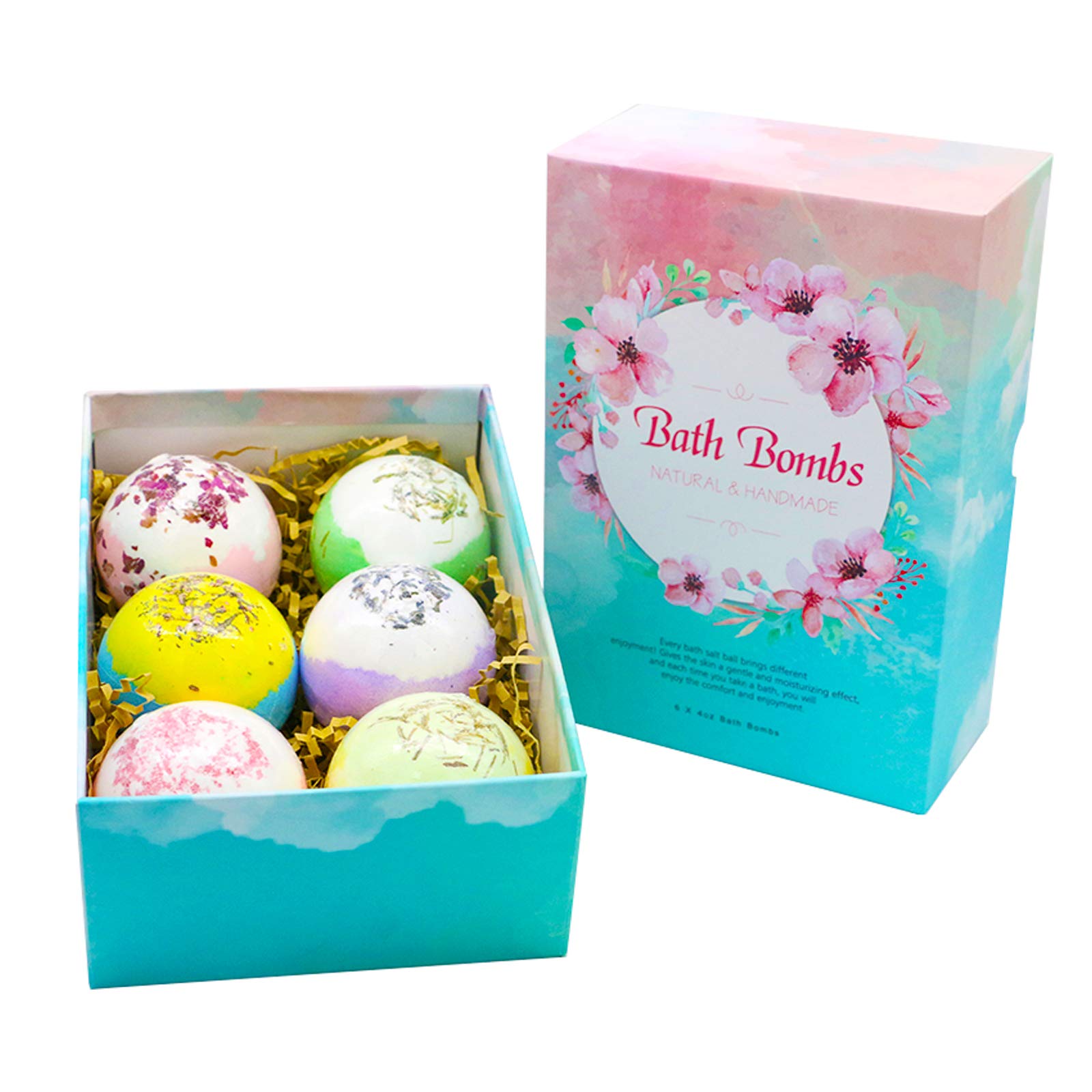 Specification: 6 pieces per set, individual ball diameter 6cm, weight 110g Suitable for: Ages 16 and up, all skin types can be used Product Function: Can be used for foot baths, baths, hot springs, facial washing, etc. Promotional Gifts: Valentine's Day, Mother's Day, Birthday, Party, Wedding, Thanksgiving, Christmas, New Year's, and other holiday gifts Product Ingredients: Sodium palmate, sodium palm oleate, citric acid, sea salt, Olea europaea (Olea europaea) fruit oil, sucrose, glycerin, water, trehalose, natural plant extracts (natural mineral ingredients: make skin smooth and soft) Instructions: 1. [How to Use in the Bath] Fill the bathtub with warm water, add a generous amount of the bath salt. The bath salt will gradually dissolve in the water, releg many bubbles and a pleasant fragrance. At this time, go to the pool and begin enjoying the unique experience of a hot spring bath. 2. [How to Use the Foot Bath] Pour an appropriate amount of warm water into the b, add 1 to 2 grains of explosive salt, and soak the middle of your foot for 10 to 15 minutes. (When the salt is added to the water, the water will bubble up from the inside, creating a feeling of boiling. Place your foot in the water it will be refreshing and moisturizing, leaving your feet soft and comfortable after use.) Tips: 1. One to three times a week, soak and rest for 20 minutes, maintaining a water temperature of 36-40 C. Rinse with water after soaking. (Generally, use 2-3 times per week.) 2. Precautions: This product is for external use only and should not be used on skin with abnormalities such as broken lips, macula, or inflammation. Swelling, pain, and sunburn. 3. Please use immediately after opening. Please store this product in a cool place, away from direct sunlight.Unique gifts, our bath bombs are suitable for women, men, and children. The exquisite gift packaging makes them a delightful surprise for family and friends for Christmas, birthdays, Valentine's Day, Mother's Day, parties, weddings, and anniversaries. No need to spend a lot of time and money on a luxurious bath simply fill your bathtub with warm water, add the essential oil bath bombs, lie back, and enjoy a bath filled with intoxicating aromas that will help relieve tension and anxiety. The perfect balance of ingredients ensures a great foaming and bubbly effect. When placed in the water, they produce rich bubbles, providing a fragrant and enjoyable bath. Most importantly, these bath salts are reusable and won't stain your skin or bathtub. Organic and natural, they are rich in various natural ingredients, such as sea salt, natural essential oils, and shea butter. The essential oil and sea salt contained herein are long-lasting, gentle, nourishing, relaxing, and soften the skin. They improve complexion, purify the skin, and leave it smooth and soft, with a strong moisturizing effect. Each unique, handmade bath bomb contains nine aromas: rose, lavender, oat milk, rosemary, calendula, honeysuckle, mothballs, strawberry, and osmanthus. Each bath bomb is individually wrapped to maintain freshness and quality for the best experience.Coffret cadeau de 6 bombes de bain avec huiles essentielles biologiques et fleurs sèches naturelles, parfait pour les bulles et le spa, cadeau pour petite amie (jardin ciel)DESCRIPTION DU PRODUIT Spécification: 6 pièces par ensemble, diamètre simple de boule 6CM, poids 110g Convient à la foule: 16 ans et plus, tous les types de peau peuvent être utilisés Fonction du produit: peut être utilisé pour le bain de pieds, le bain, les sources chaudes, le lavage du visage, etc. Cadeaux promotionnels: Saint Valentin, fête des mères, anniversaire, fête, mariage, Thanksgiving, Noël, Nouvel An et autres cadeaux de vacances Ingrédients du produit : Palmate de sodium, oléate de palme de sodium, acide citrique, sel de mer, oléa europaea (OLEA EUROPAEA) huile de fruits, saccharose, glycérine, eau, tréhalose, extraits naturels de plantes (ingrédients minéraux naturels : rendre la peau lisse et douce) Instructions : 1. [Comment utiliser le bain] Remplissez la baignoire avec de l'eau tiède, prenez une bonne quantité de sel explosif dans la baignoire, le sel explosif se dissoudra progressivement dans l'eau et libérera beaucoup de bulles et émettra une odeur parfumée. À cette époque, allez à la piscine et commencez à profiter du voyage unique de baignade de source chaude de 2. [Comment utiliser le bain de pieds] Mettez une quantité appropriée d'eau tiède dans le bassin, mettez-y 1 à 2 grains de sel explosif et faites tremper la partie médiane pendant 10 à 15 minutes (lorsque le sel est mis dans l'eau, l'eau roule de l'intérieur comme bouillante, mettez le pied Mettez-le dans l'eau, rafraîchissant et hydratant, les pieds sont doux et confortables après utilisation) Conseils: 1. Une à trois fois par semaine, tremper et reposer pendant 20 minutes, maintenir la température de l'eau à 36-40?, rincer à l'eau après le trempage (généralement utiliser 2-3 fois par semaine) 2. Précautions : Ce produit est destiné à un usage externe uniquement, et ne peut pas être utilisé sur la peau présentant des anomalies telles que la bouche cassée, la macula, l'inflammation, l'enflure et la douleur et les coups de soleil. 3. Veuillez l'utiliser immédiatement après ouverture. Veuillez garder ce produit dans un endroit frais, à l'abri de la lumière directe du soleil.Cadeaux uniques, nos bombes de bain sont adaptées pour les femmes, les hommes, les enfants, les hommes et les femmes. L'emballage cadeau exquis est une surprise pour la famille et les amis pour Noël, un anniversaire, la Saint-Valentin, la fête des mères, une fête, un mariage et un anniversaire de mariage. Plus besoin de dépenser beaucoup de temps et d'argent pour un bain luxueux, injectez de l'eau chaude dans la baignoire à la maison, mettez les bombes de bain d'huiles essentielles, allongez-vous et profitez du bain plein d'arômes enivrants, il vo