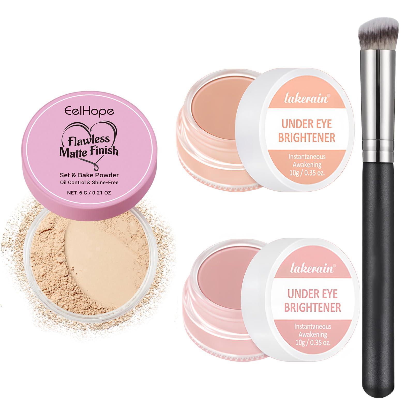 Concealer and Fixing Powder Set Conceal and set in one step! An even make-up has never been so easy! Say goodbye to complicated makeup routines! This all-in-one concealer and setting powder set is ideal for the modern, active woman. Just one set is all you need for perfect make-up in no time: it camouflages imperfections and ensures long-lasting durability. The set contains a nude illuminating concealer (10 g), a pink illuminating concealer (10 g), a setting powder (6 g), a powder puff and a professional concealer brush. The generous size is economical to use and meets all your makeup needs! Nourishing care, mild protection This eye contour concealer with hyaluronic acid and shea butter intensively hydrates and cares for the delicate skin around the eyes. The mild formula has been specially developed for normal, dry, oily and combination skin. It is also suitable for sensitive skin and helps prevent fine lines and irritation. Two-tone concealer, precise color correction Nude concealer: Naturally covers dull spots and dark circles, adapts perfectly to most Asian and European skin tones. Pink concealer: Conceals and brightens dark circles, brightens dull spots and neutralizes yellow undertones. Mix the two colors as desired and create the shade that matches your skin tone for a flawless and even complexion! ? Long-lasting makeup, perfect all day long This silky concealer has a light texture that melts seamlessly into the skin, without a mask-like effect or heavy feeling. The fine fixing powder works like a mist, absorbs excess oil and can be applied evenly thanks to the soft applicator. It lasts all day, does not shine in candlelight and is sweat resistant: ideal for long outdoor activities. For flawless makeup from morning to evening! ? Convenient design, makeup anytime This compact set offers a surprising amount of space and fits easily in your makeup bag! Perfect for business trips, vacations and quick touch-ups, become a professional makeup artist in an instant. This product combines concealer, setting powder and accessories in one handy package. This way you save time, energy and space! SAFETY WARNING noConvenient Design This concealer and setting powder set is compact and spacious, easy to store and carry anywhere. This allows you to effortlessly achieve an even complexion, even on a business trip or holiday. The set contains a concealer, fixing powder and make-up tools. Long Lasting Makeup The concealer has a silky, easy-to-blend texture that does not crease, feels weightless and blends seamlessly into the skin. The fine, particle-free fixing powder absorbs excess oil. The soft powder ensures an even application and long-lasting wear - ideal for quick touch-ups, dates, outdoor activities and more. Two-tone concealer for precise skin tone correction The nude concealer naturally covers dull spots and dark circles and is suitable for most Asian and European skin tones. The pink concealer camouflages and brightens dark circles and dull spots and neutralizes yellow undertones. The two shades blend seamlessly for a flawless finish on all skin tones. Nourishing care This eye contour concealer with hyaluronic acid and shea butter hydrates intensively. It nourishes and hydrates the delicate skin around the eyes. Specially formulated for normal, dry, oily and combination skin. Mild, skin-friendly and non-irritating, even suitable for sensitive skin. Concealer and Fixing Kit The ideal one-step solution for correcting and fixing makeup. This kit contains a nude illuminating concealer, a pink illuminating concealer, a setting powder, a powder puff and a concealer brush. The brightening concealer comes in two 10g sachets, a generous amount for long-lasting use. The fixing powder has a fine texture and contains 6 g.2 stuks Under Eye Brightener (10g x 2) en Setting Powder, inclusief poederdons en concealerkwast, verhelderende concealer, kleurcorrector voor donkere kringen, dekking van donkere kringen, verhelderen Concealer en fixeerpoederset Verberg en fixeer in één stap! Een egale make-up was nog nooit zo makkelijk! Zeg vaarwel tegen ingewikkelde make-uproutines! Deze alles-in-één concealer en fixeerpoederset is ideaal voor de moderne, actieve vrouw. Slechts één set is alles wat je nodig hebt voor een perfecte make-up in een handomdraai: het camoufleert oneffenheden en zorgt voor een langdurige houdbaarheid. De set bevat een nude verhelderende concealer (10 g), een roze verhelderende concealer (10 g), een fixeerpoeder (6 g), een poederdons en een professionele concealerkwast. Het royale formaat is zuinig in gebruik en voldoet aan al je make-upbehoeften! Voedende verzorging, milde bescherming Deze oogcontour concealer met hyaluronzuur en sheaboter hydrateert en verzorgt de tere huid rond de ogen intensief. De milde formule is speciaal ontwikkeld voor de normale, droge, vette en gecombineerde huid. Hij is ook geschikt voor de gevoelige huid en helpt fijne lijntjes en irritatie te voorkomen. Tweekleurige concealer, nauwkeurige kleurcorrectie Nude concealer: Dekt op natuurlijke wijze doffe plekken en donkere kringen, past zich perfect aan de meeste Aziatische en Europese huidtinten aan. Roze concealer: Verbergt en verheldert donkere kringen, verheldert doffe plekken en neutraliseert gele ondertonen. Meng de twee kleuren naar wens en creëer de tint die bij je huidskleur past voor een vlekkeloze en egale teint! ? Langhoudende make-up, de hele dag perfect Deze zijdezachte concealer heeft een lichte textuur die naadloos in de huid smelt, zonder een maskerachtig effect of zwaar gevoel. De fijne fixerende poeder werkt als een nevel, absorbeert overtollige olie en is dankzij de zachte applicator gelijkmatig aan te brengen. Hij blijft de hele dag zitten, glanst niet bij kaarslicht en is zweetbestendig: ideaal voor lange buitenactiviteiten. Voor een vlekkeloze make-up van 's ochtends tot 's avonds! ? Handig ontwerp, make-up altijd Deze compacte set biedt verrassend veel ruimte en past gemakkelijk in je 