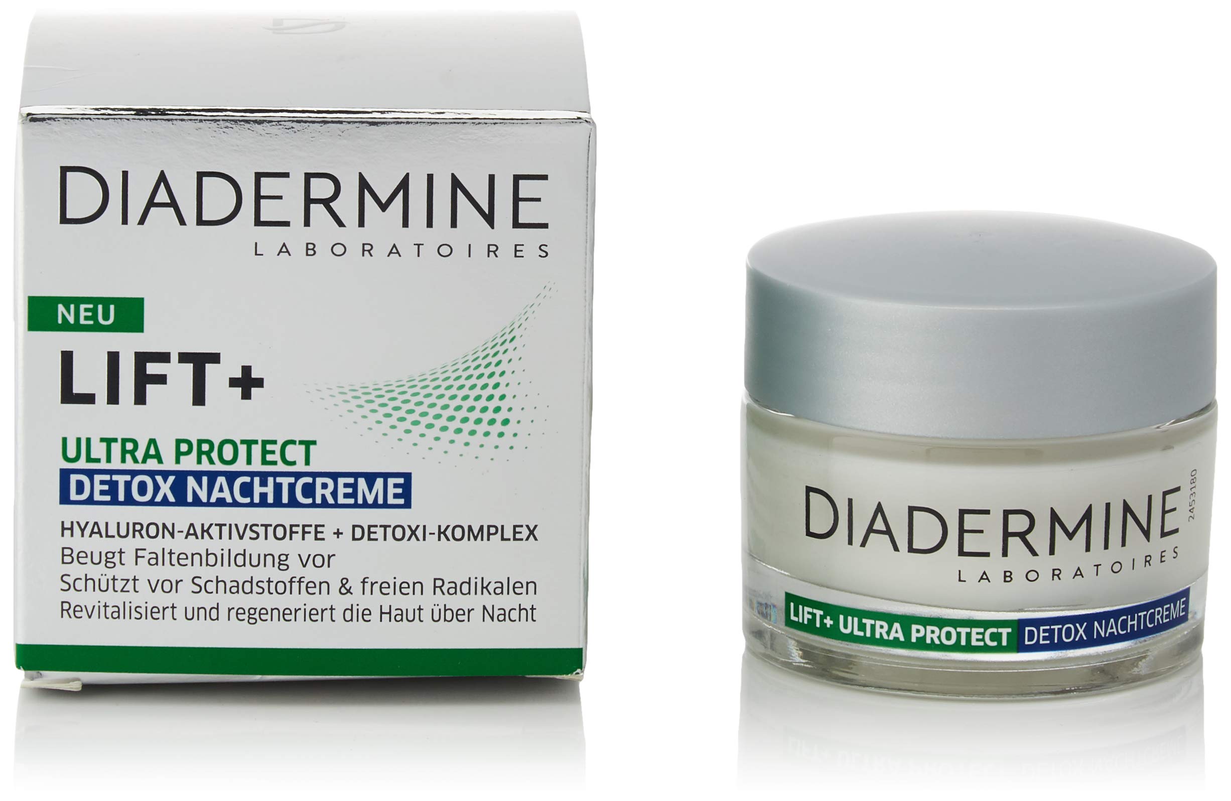 Skin aging not only takes place in the natural aging process, but external factors such as blue light, UV light or skin moisture loss also play a major role. LIFT Ultra Protect is Diadermine's first protection against the essential environmental influences responsible for skin aging. The revitalizing and regenerating formula of the LIFT Ultra Protect night cream helps the skin to neutralize the effects of harmful environmental stresses at night and to recover from daily stress. Hyaluronic active substances prevent wrinkle formation, the detoxi complex protects the skin against harmful substances and free radicals. All Diadermine products are particularly allergy-friendly certified by the European Center for Allergy Research Foundation (ECARF). INGREDIENTS Aqua, hexanediol, caprylic capric triglyceride, glycerin, glyceryl stearate, betaine, hydroxyethyl urea, cetearyl alcohol, Prunus Amygdalus Dulcis oil, Butyrospermum Parkii Butter, Tapioca Starch, Sodium Hyaluronate, Hydrolyzed Opuntia Ficus-Indica Flower Extract, Vitis VS. Inifera Fruit Extra. ct, hydroxymethoxyphenyl decanone, plankton extract, panthenol, bisabolol, urea, tocopherol, hydroxyacetophenone, dimethicone, sodium acrylates sodium acryloyldimethyl taurat copolymer, potassium cetyl phosphate, sodium carbomer, polyisobutenes, hydrogenated palm glycerides, hydrogens. ated palm glycycy. erides citrate, sorbitan oleates, caprylic caprylic glucosides, ammonium lactate, polymethylsilsesquioxanes, butylene glycol, perfume, phenoxyethanol, sodium benzoate, potassium sorbatesECARF certified. Protects against harmful substances and free radicals. Prevents wrinkles. With hyaluron active substances detoxi complex. Detox night cream: helps the skin neutralize harmful environmental stresses at night and recover from daily stress.DIADERMINE LIFT nachtverzorging Ultra Protect Detox nachtcrème, per stuk verpakt (1 x 50 ml) De huidveroudering vindt niet alleen plaats in het natuurlijke verouderingsproces, maar ook externe factoren zoals blauw licht, uv-licht of vochtverlies van de huid spelen een grote rol. LIFT Ultra Protect is de eerste bescherming van Diadermine tegen de essentiële milieu-invloeden die verantwoordelijk zijn voor de huidveroudering. De revitaliserende en regenererende formule van de LIFT Ultra Protect nachtcrème helpt de huid om de effecten van schadelijke milieubelastingen 's nachts te neutraliseren en zich van de dagelijkse stress te herstellen. Hyaluronactieve stoffen voorkomen rimpelvorming, het detoxi-complex beschermt de huid tegen schadelijke stoffen en vrije radicalen. Alle producten van Diadermine zijn bijzonder allergievriendelijk door de European Centre for Allergy Research Foundation (ECARF) gecertificeerd. INGREDIËNTEN Aqua, hexaandiol, caprylic capric triglyceride, glycerine, glyceryl stearaat, betaïne, hydroxyethyl urea, cetearyl alcohol, Prunus Amygdalus Dulcis olie, Butyrospermum Parkii Butter, Tapioca Starch, Natriumhyaluronaat, Hydrolyzed Opuntia Ficus-Indica Flower Extract, Vitis VS. Inifera Fruit Extra. ct, hydroxymethoxyfenyl decanon, plankton extract, panthenol, bisabolol, urea, tocoferol, hydroxyacetofenone, dimethicone, natriumacrylaten natrium-acryloyldimethyl taurat copolymeer, potassium cetylfosfaat, natriumcarbomer, polyisobuten, gehydrogeneerde palmglycerides, hydrogenen. ated palm glycycy. erides citraat, sorbitaan oleaten, capryl caprylglucosiden, ammoniumlactaat, polymethylsilsesquioxanen, butyleenglycol, parfum, fenoxyethanol, natriumbenzoaat, potassiumsorbatenECARF-gecertificeerd. Beschermt tegen schadelijke stoffen en vrije radicalen. Voorkomt rimpels. Met hyaluron actieve stoffen detoxi-complex. Detox nachtcrème: helpt de huid 's nachts schadelijke milieubelastingen te neutraliseren en te herstellen van de dagelijkse stress.