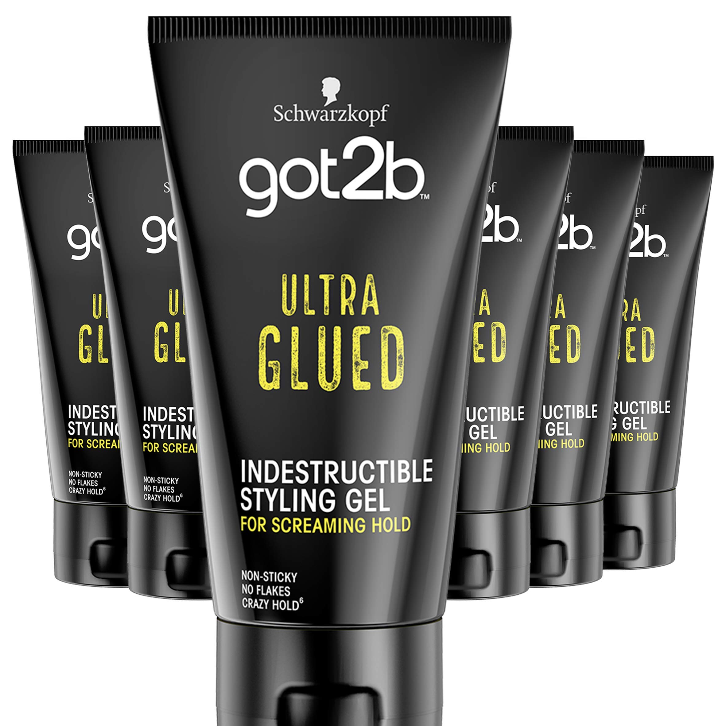 Beat gravity with got2b ultra glued gel. The strongest got2b gel ever, does not stick and only becomes hard when your hair is perfectly modeled. - Hold level 6 - Non-sticky Use: Divide a little got2b glued ultra glued gel over your palms and apply evenly in your hair.Use: Divide a little got2b glued ultra glued gel over your palms and apply evenly in your hair. Does not stick and only becomes hard when your hair is perfectly styled. Hold level 6. The strongest got2b gel ever. Beat gravity with got2b ultra glued gel.Schwarzkopf got2b Ultra Glued Gel 150ml , 6 stuks Versla de zwaartekracht met got2b ultra glued gel. De sterkste got2b gel ooit, plakt niet en wordt pas hard als je haar perfect in model zit. - Hold level 6 - Plakt niet Gebruik: Verdeel een beetje got2b glued ultra glued gel over je handpalmen en breng gelijkmatig aan in je haar.Gebruik: Verdeel een beetje got2b glued ultra glued gel over je handpalmen en breng gelijkmatig aan in je haar. Plakt niet en wordt pas hard als je haar perfect in model zit. Hold level 6. De sterkste got2b gel ooit. Versla de zwaartekracht met got2b ultra glued gel.