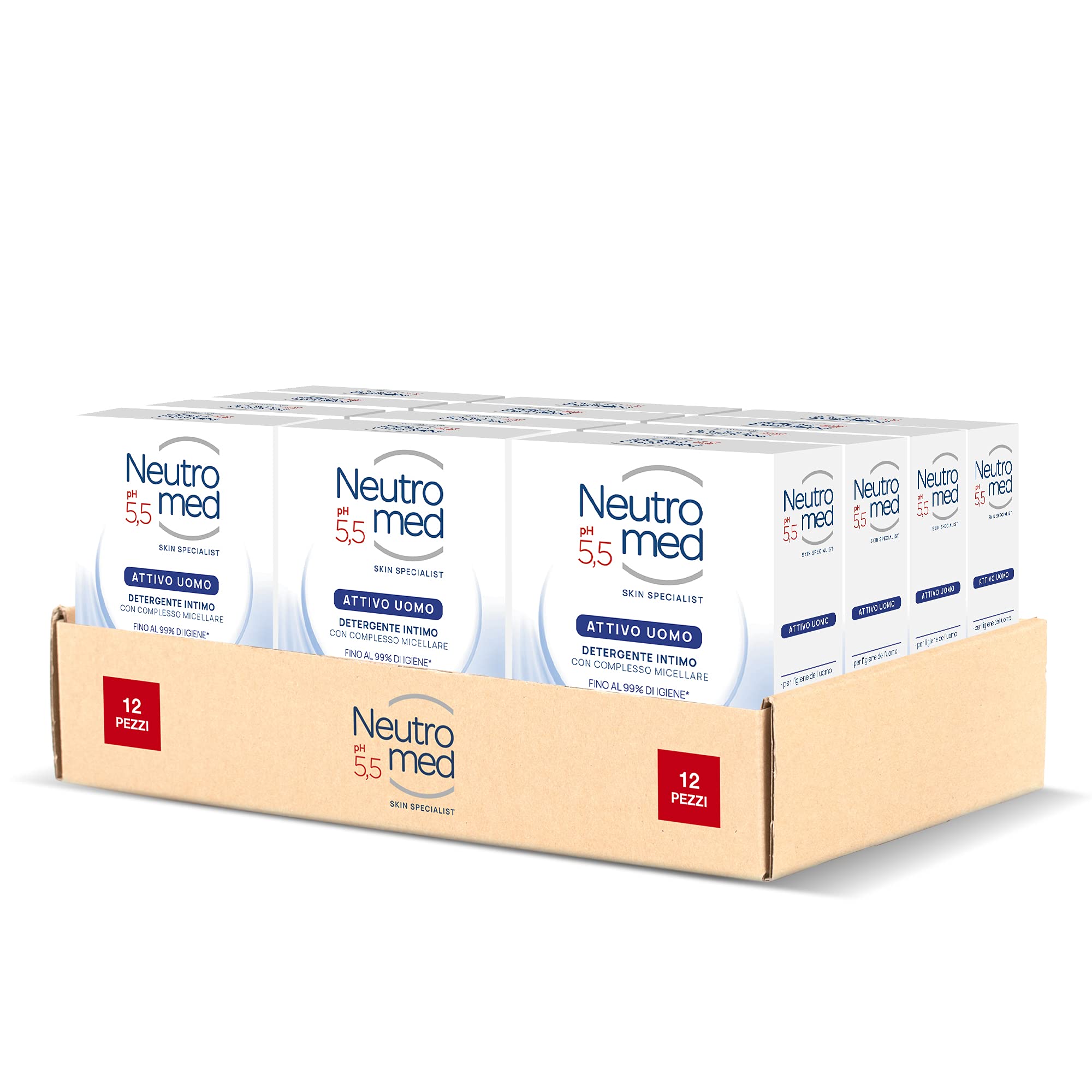 Neutromed Active Intimate Cleanser for Men, with micellar complex, protective action, pH 5.5: for precise and gentle intimate hygiene and a soothing action, for excellent respect of the intimate area and its physiological pH. The Active For Men variant is specially formulated for men's intimate hygiene and ensures up to 99 hygiene. Its formula offers fresh and effective protection while respecting the physiological pH of the male intimate area. Its antibacterial action combats unpleasant odors for a pleasant feeling of freshness. Dermatologically tested. Free of artificial colors and allergen-free fragrance. Approved by the Italian Association for Women Physicians for daily intimate hygiene.Dermatologically tested: free of artificial colors and allergen-free fragrance approved by the Italian Association of Women Physicians for daily intimate hygiene. Excellent for: men's intimate hygiene, combating unpleasant odors. Formula: provides fresh and effective protection, respecting the physiological pH of male intimate areas. Benefits: active ingredient for men, specially designed for men's intimate hygiene. Intimate cleanser: with micellar complex for precise and gentle intimate hygiene and a soothing action, respecting the intimate area and its physiological pH.Neutromed Nettoyant pour sous-vêtements actif pour homme, avec complexe micellaire, action protectrice, pH 5,5, 12 x 200 mlDESCRIPTION DU PRODUIT Neutromed Nettoyant intime actif pour homme, avec complexe micellaire, action protectrice, pH 5,5 : pour une hygiène intime précise et délicate et une action apaisante, pour un excellent respect des parties intimes et du pH physiologique. La variante Active For Men est spécialement étudiée pour l'hygiène intime de l'homme et assure une hygiène allant jusqu'à 99 . Sa formule offre une protection fraîche et efficace, tout en respectant le pH physiologique des parties intimes masculines. Son action antibactérienne combat les mauvaises odeurs pour une agréable sensation de fraîcheur. Testé sous contrôle dermatologique. Sans colorants artificiels, parfum sans allergènes. Approuvé par l'Association italienne pour femmes médicales pour l'hygiène intime quotidienne.Testé dermatologiquement : sans colorants artificiels, parfum sans allergènes approuvé par l'association italienne pour femmes médicales pour l'hygiène intime quotidienne. Excellent pour : l'hygiène intime de l'homme, pour lutter contre les mauvaises odeurs. Formule : offre une protection fraîche et efficace, en respectant le pH physiologique des parties intimes masculines. Avantages : actif pour homme, spécialement conçu pour l'hygiène intime de l'homme. Nettoyant intime : avec complexe micellaire pour une hygiène intime précise et délicate et une action apaisante, pour le respect des parties intimes et du pH physiologique.