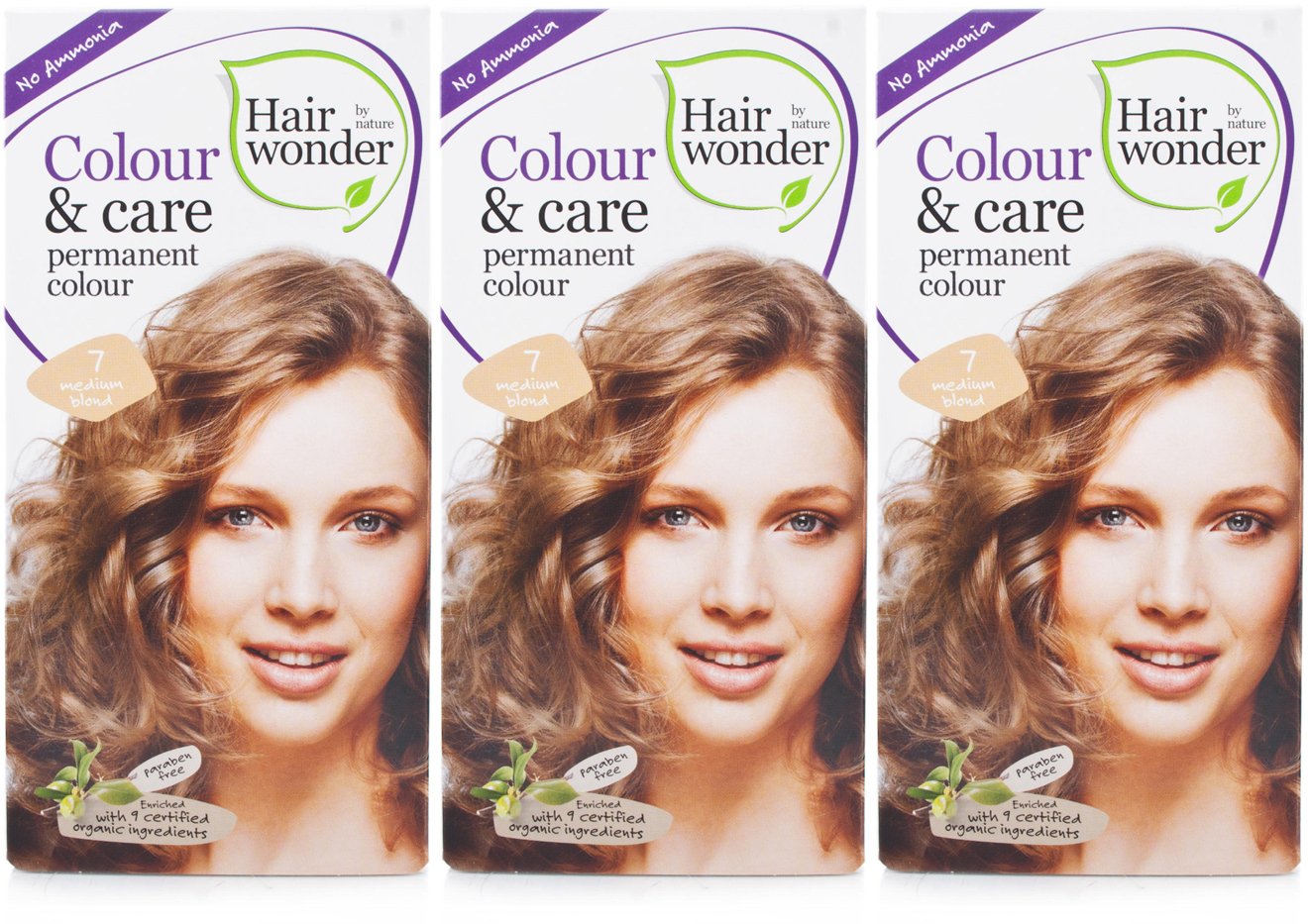 Hennaplus Hairwonder Lot de 3 colorations capillaires 7 Blond moyen 100 ml 100 ml