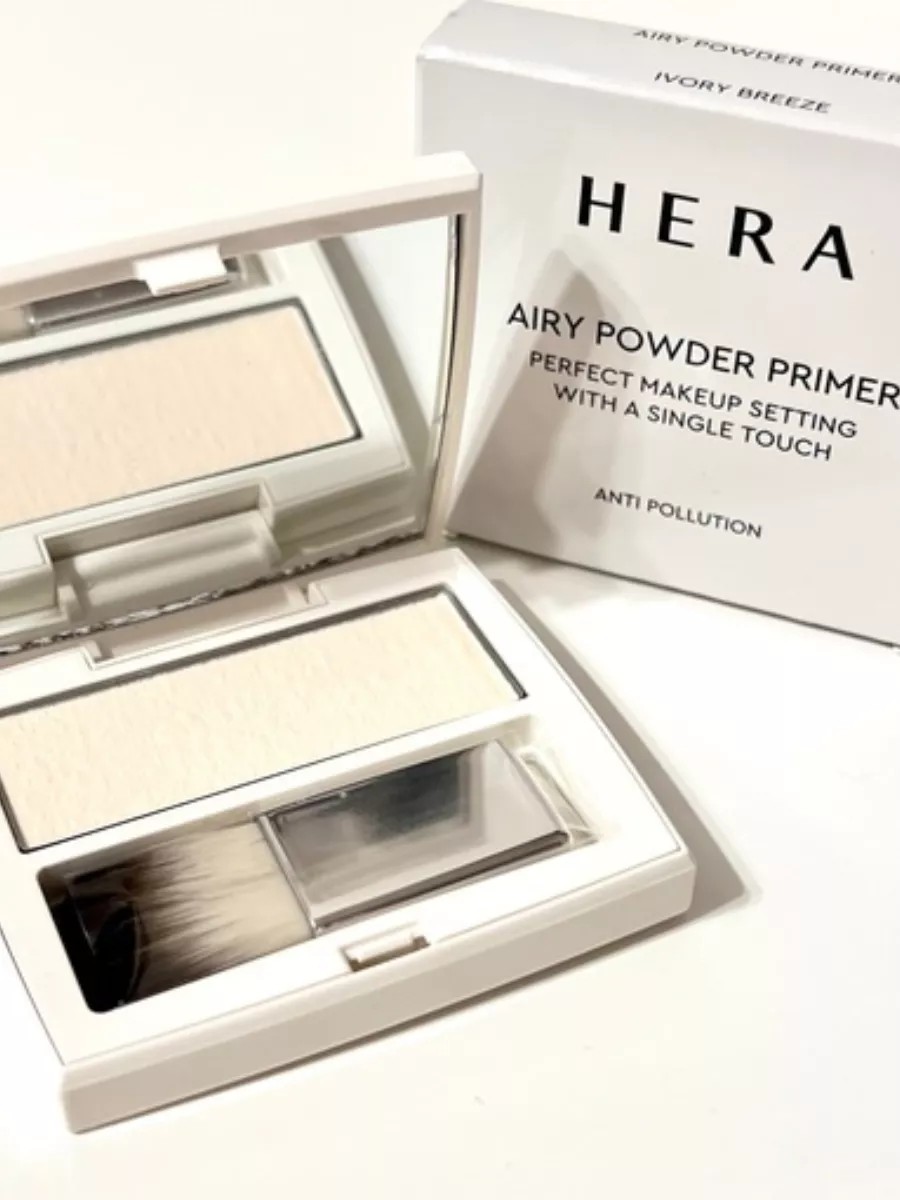 Hera Innovative Transparent Compact Face Powder Primer (3.5g) Airy Powder Primer Perfect Makeup Setting With A Single Touch Anti-Pollution - powder creates smooth and flawless skin without emphasizing pores.